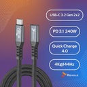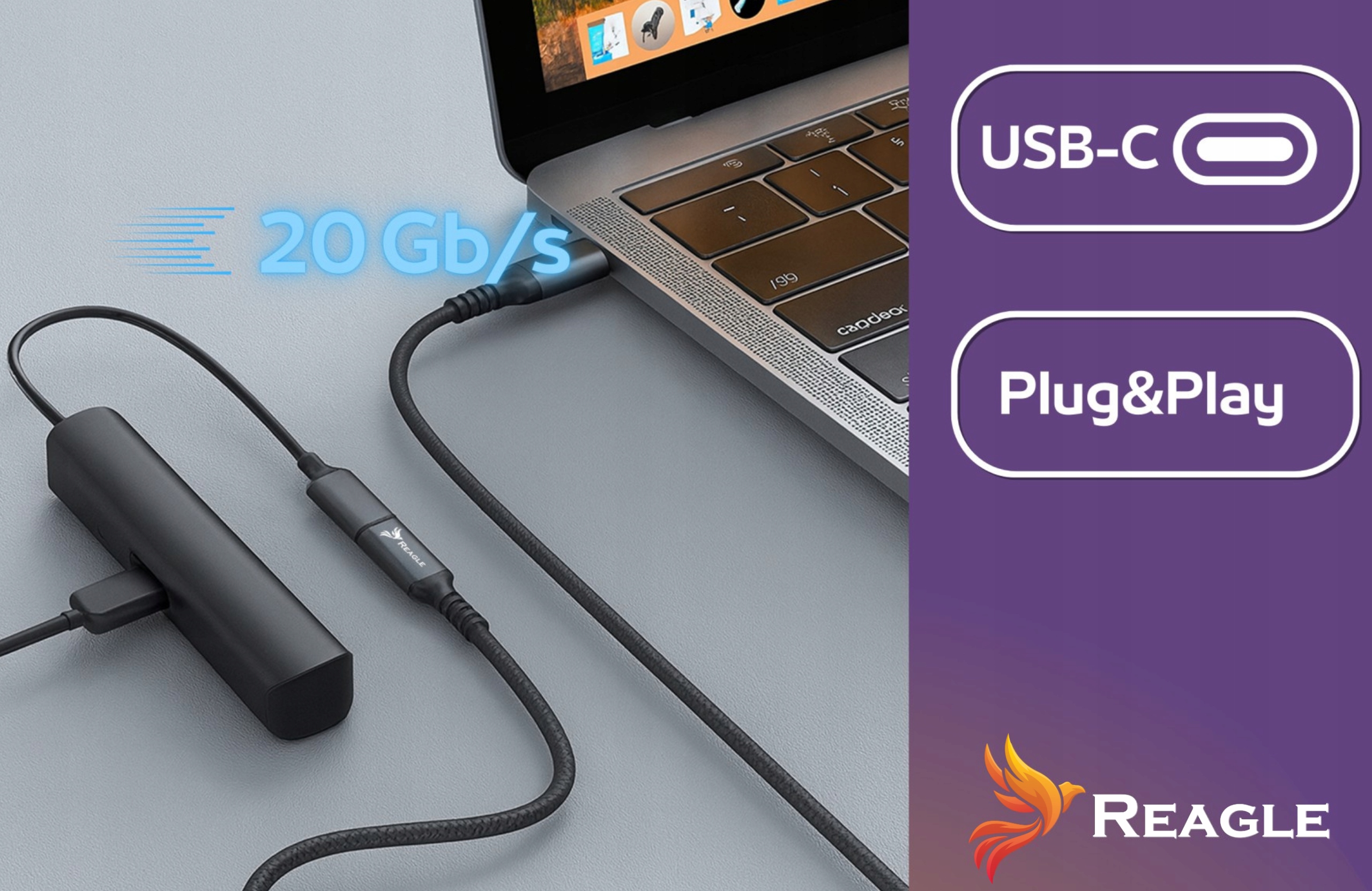 Dzięki nowoczesnemu standardowi USB 3.2 Gen 2x2, przedłużacz USB-C Reagle oferuje dwukrotnie większą przepustowość niż standard Gen 2, osiągając nawet 20 Gb/s. To ultraszybki transfer danych, który znacząco przyspiesza codzienną pracę i obsługę dużych plików.