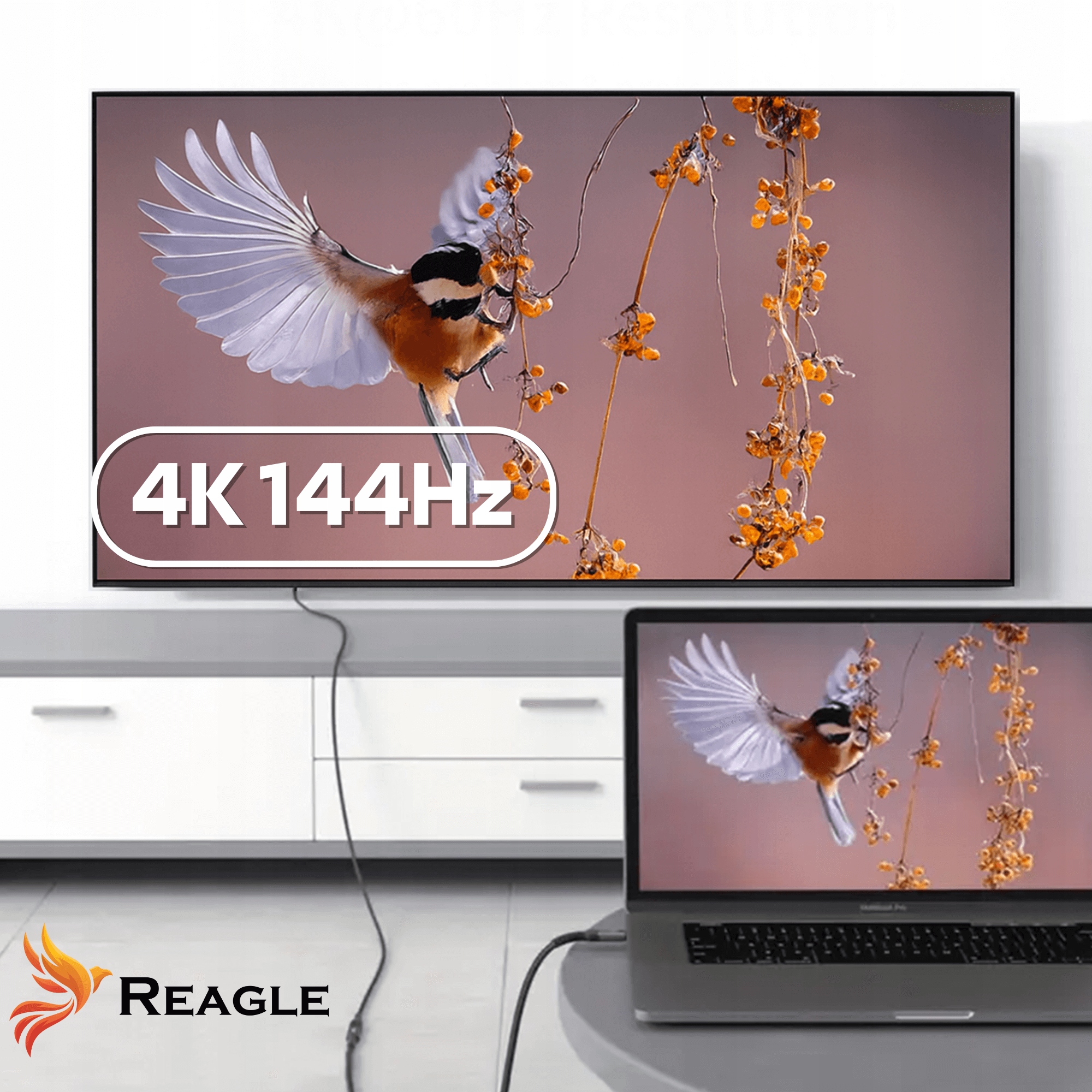 Przedłużacz wspiera transmisję wideo w rozdzielczości 4K przy 144 Hz – to czysty, płynny obraz bez opóźnień. Idealny do prezentacji, podłączenia monitora, projektora czy stacji roboczej.