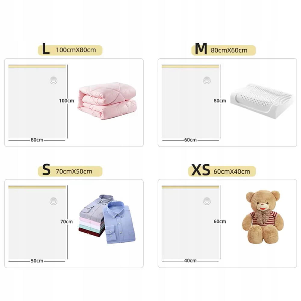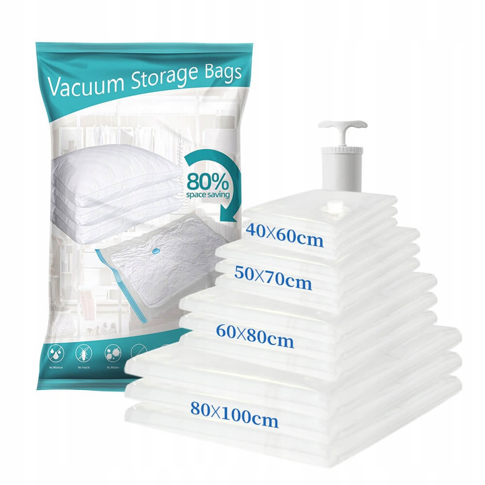 Kup teraz zestaw 12 worków próżniowych z pompką i ciesz się idealnym porządkiem oraz ochroną ubrań i pościeli!