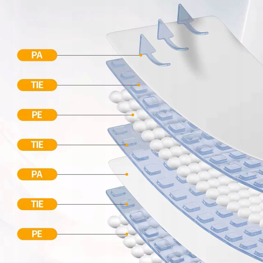 Każdy worek wykonany został z mocnej folii PA+PE. Siedem warstw chroni przed wilgocią, zabrudzeniami i przebiciem, gwarantując długotrwałe użytkowanie.