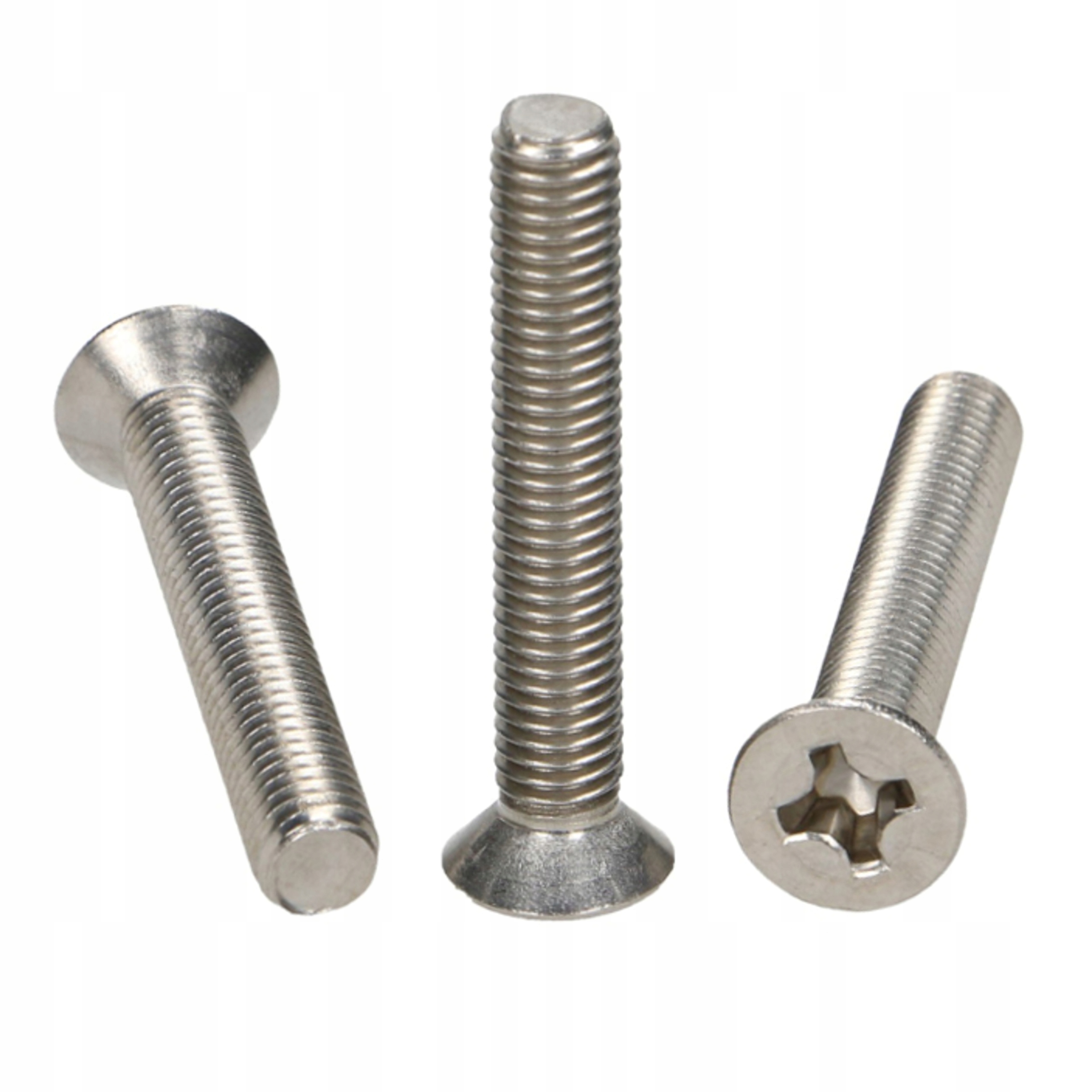 Wkręty metryczne z łbem stożkowo-płaskim (wpuszczanym) z nacięciem krzyżowym pełny gwint