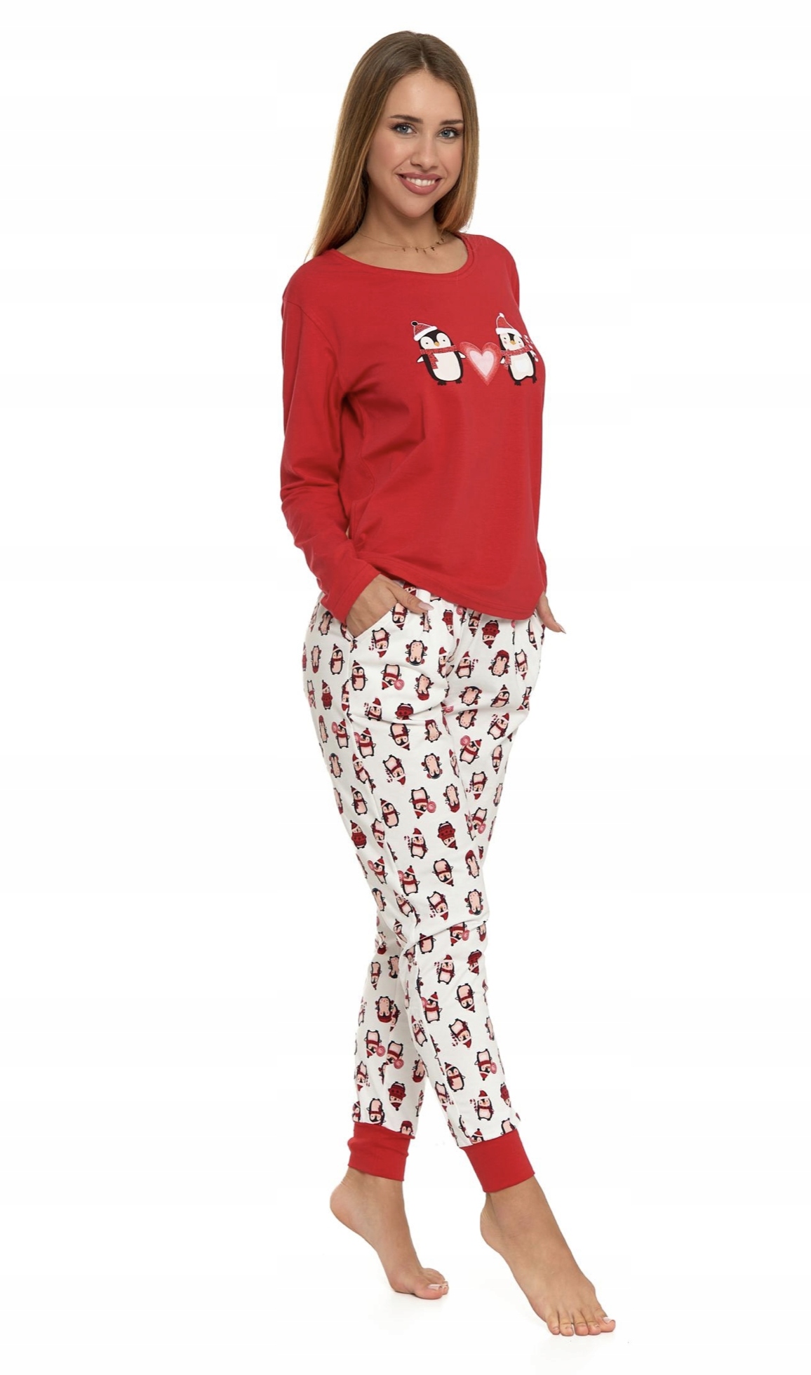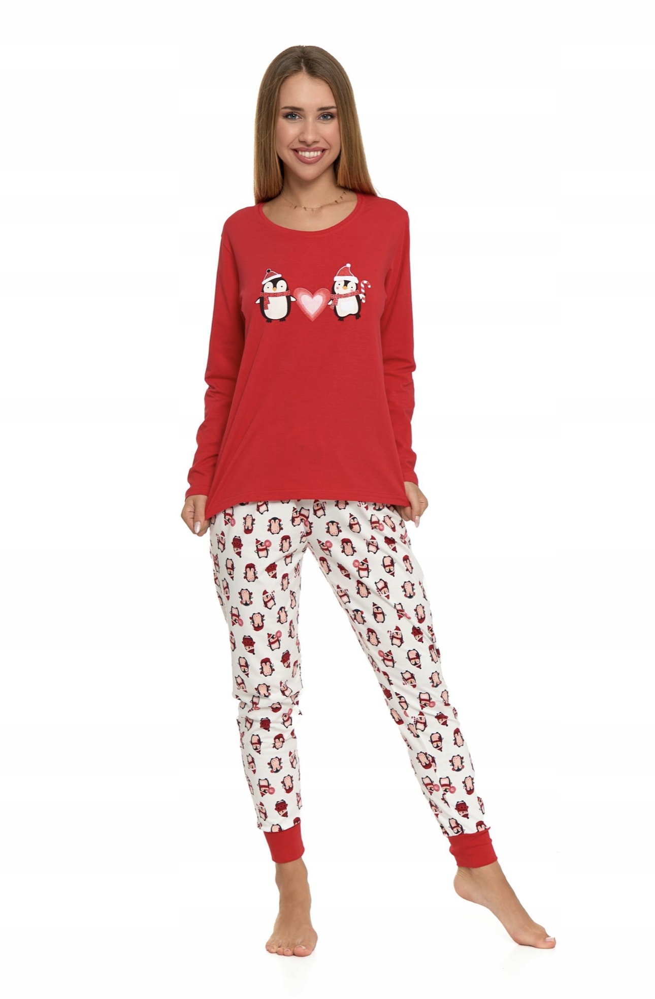 Piżama damska bawełniana świąteczna z wzorem w pingwiny to idealna propozycja dla kobiet, które pragną poczuć się wygodnie i stylowo podczas świątecznych poranków i wieczorów.