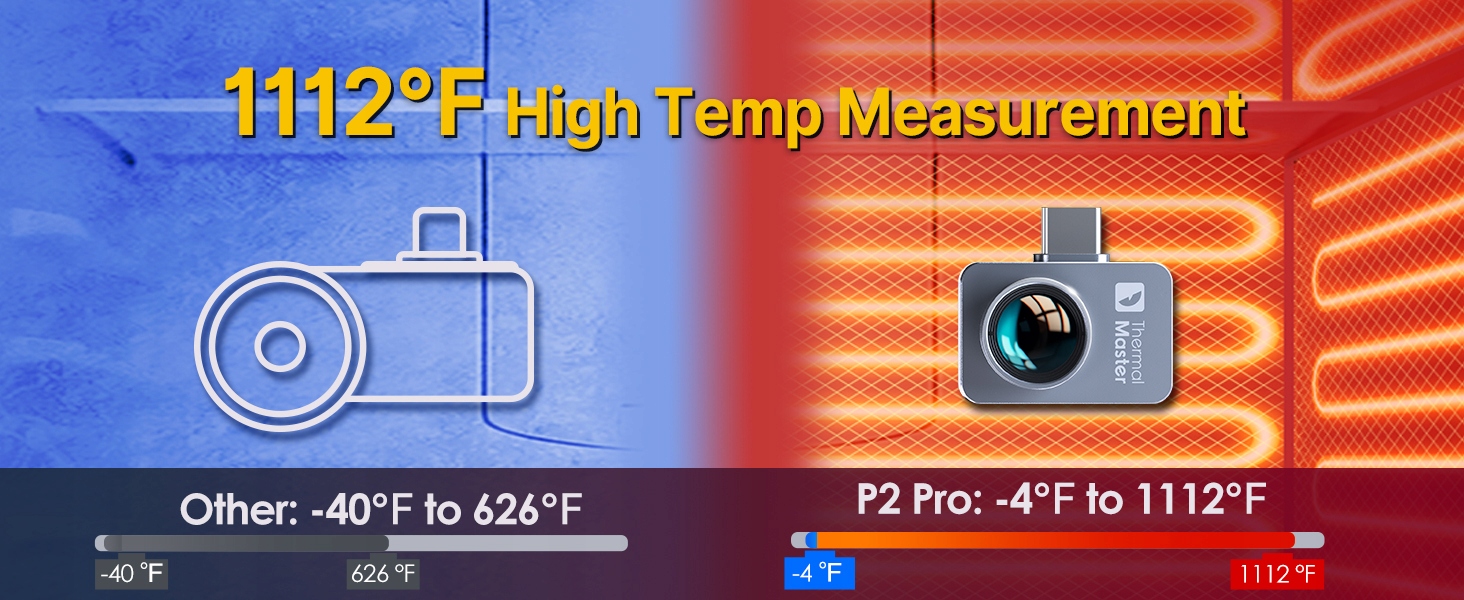 Thermal Master P2 Pro obejmuje zakres temperatur od -20°C do 480°C z dokładnością do ±3,6°F (±1,9°F) dla PCB. Idealny dla elektryków, inżynierów, wykonawców i właścicieli domów do wykrywania przegrzania dzięki płynnym odczytom 25 Hz.