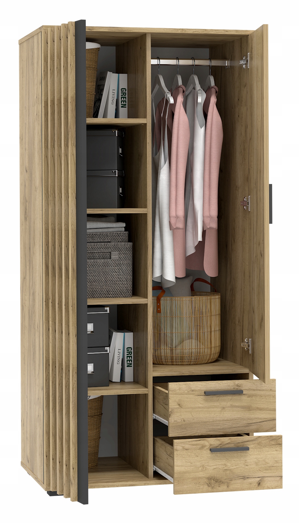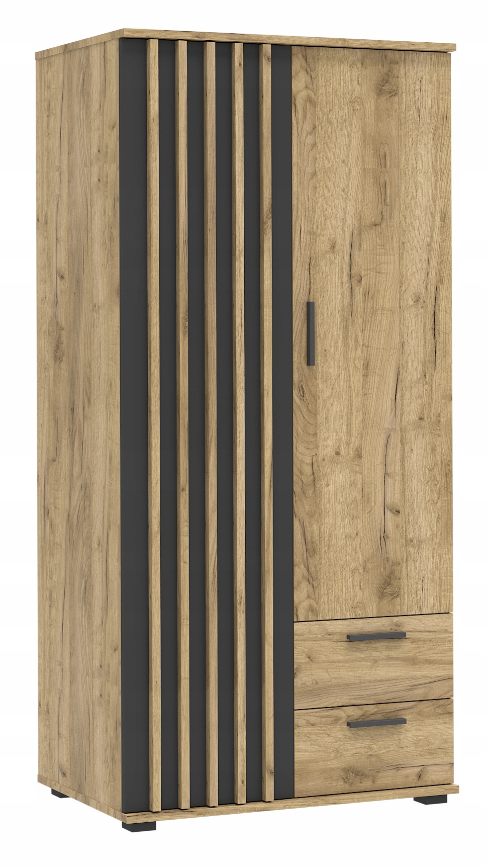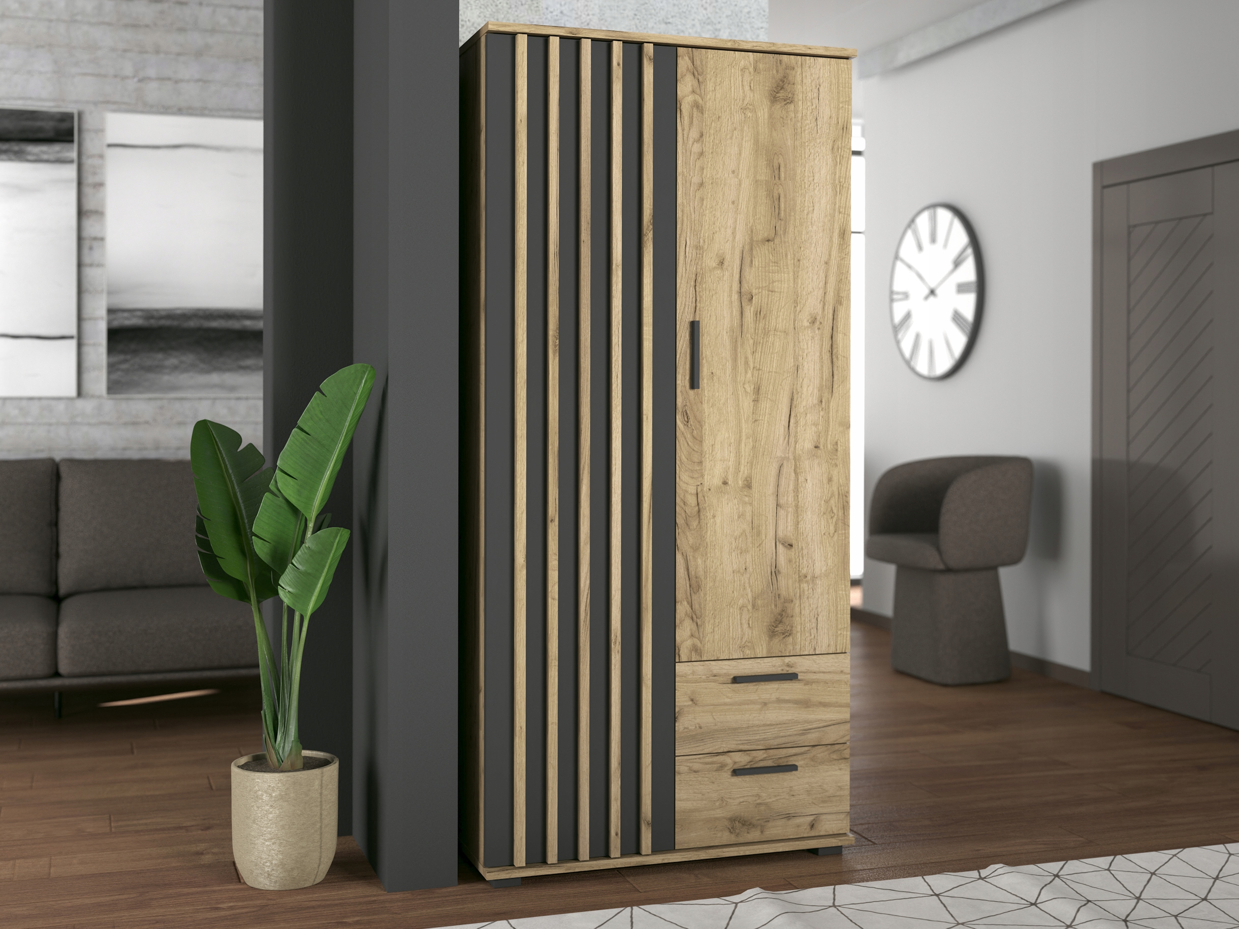 ✨Стильный, функциональный и вместительный шкаф для любого интерьера! практичное место для одежды и аксессуаров? Наш гардероб сочетает в себе элегантный внешний вид с продуманным функциональностью. Благодаря сочетанию цветов DAB craft и черного, а также современных дверей с ламелями, он станет украшением спальни, прихожей или гардеробной.