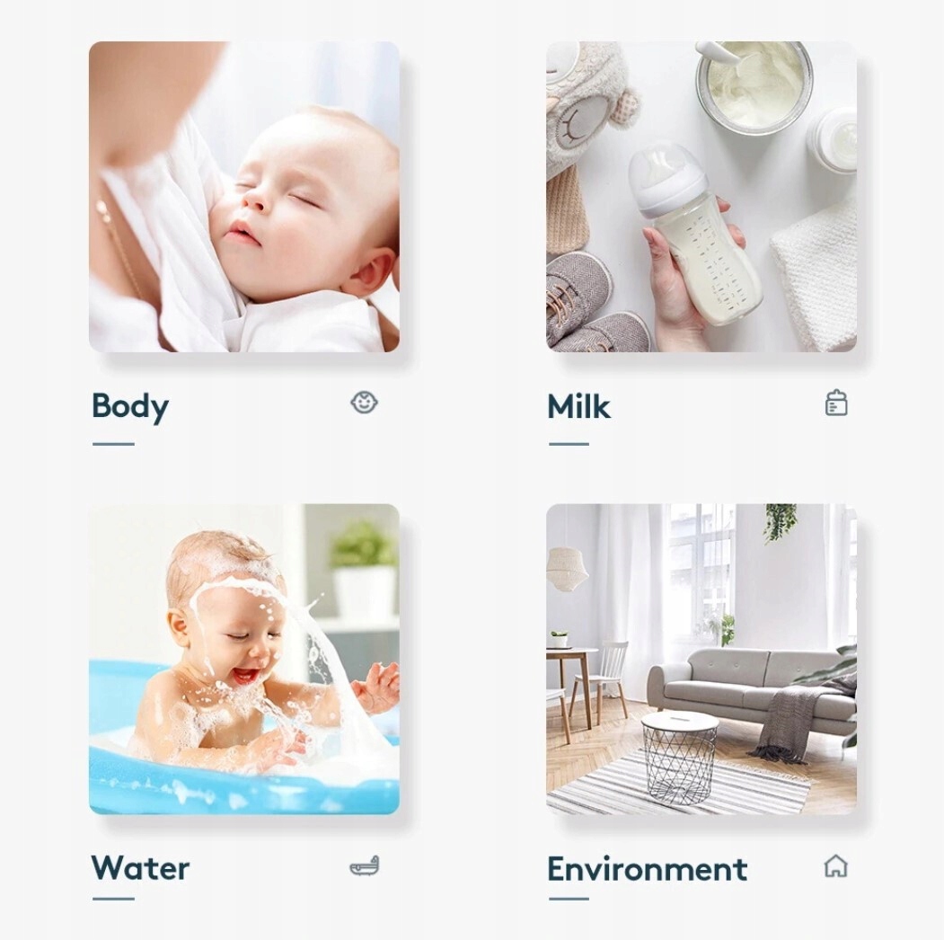 - oprócz ciała mierzy temperatury obiektów (np. wodę do kąpieli, mleko dla dziecka czy po prostu temperaturę otoczenia)