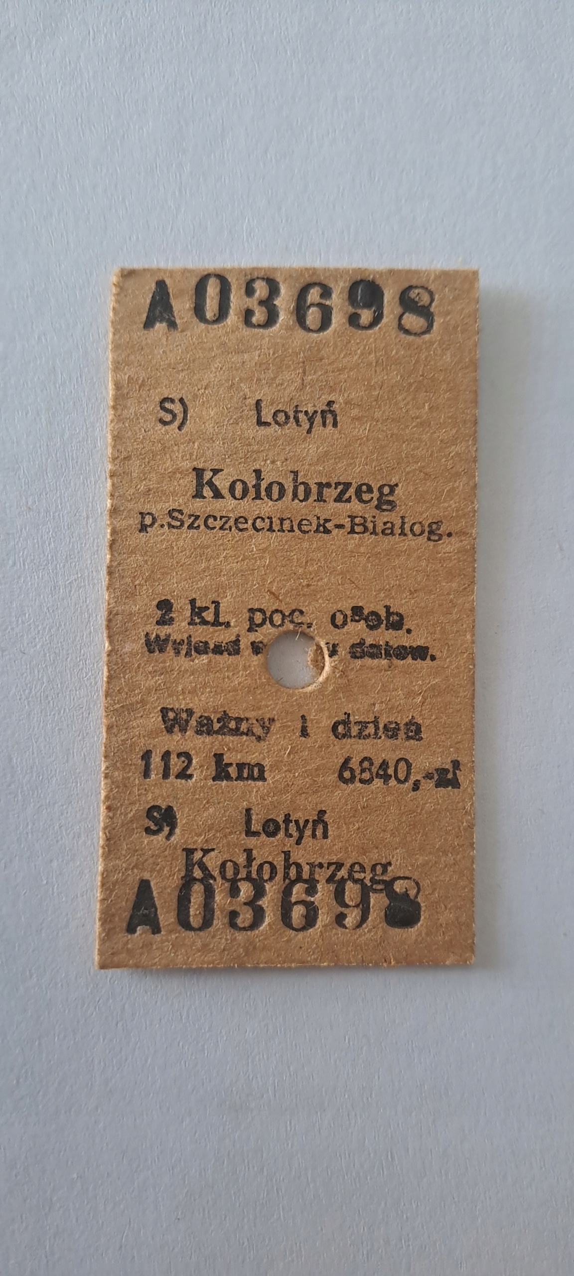 КАРТОННЫЙ БИЛЕТ НА ЖЕЛЕЗНОДОРОЖНЫЙ ВОКЗАЛ ЛОТЫНЬ-КОЛОБЖЕГ / BIAŁOGARD / SZCZECINEK