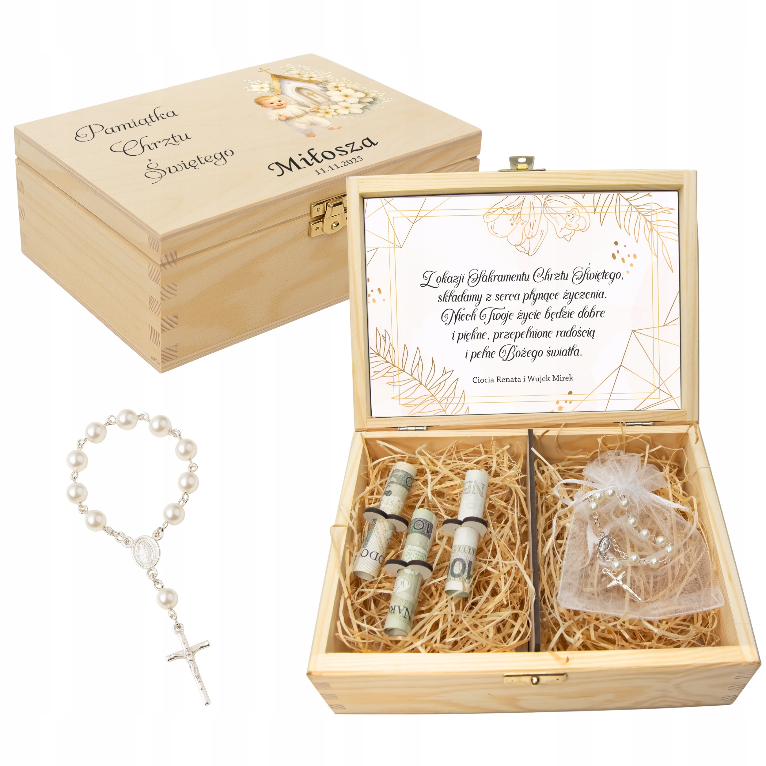 ✅ Pełna personalizacja – wybierasz grafikę, tło, życzenia i kolor różańca