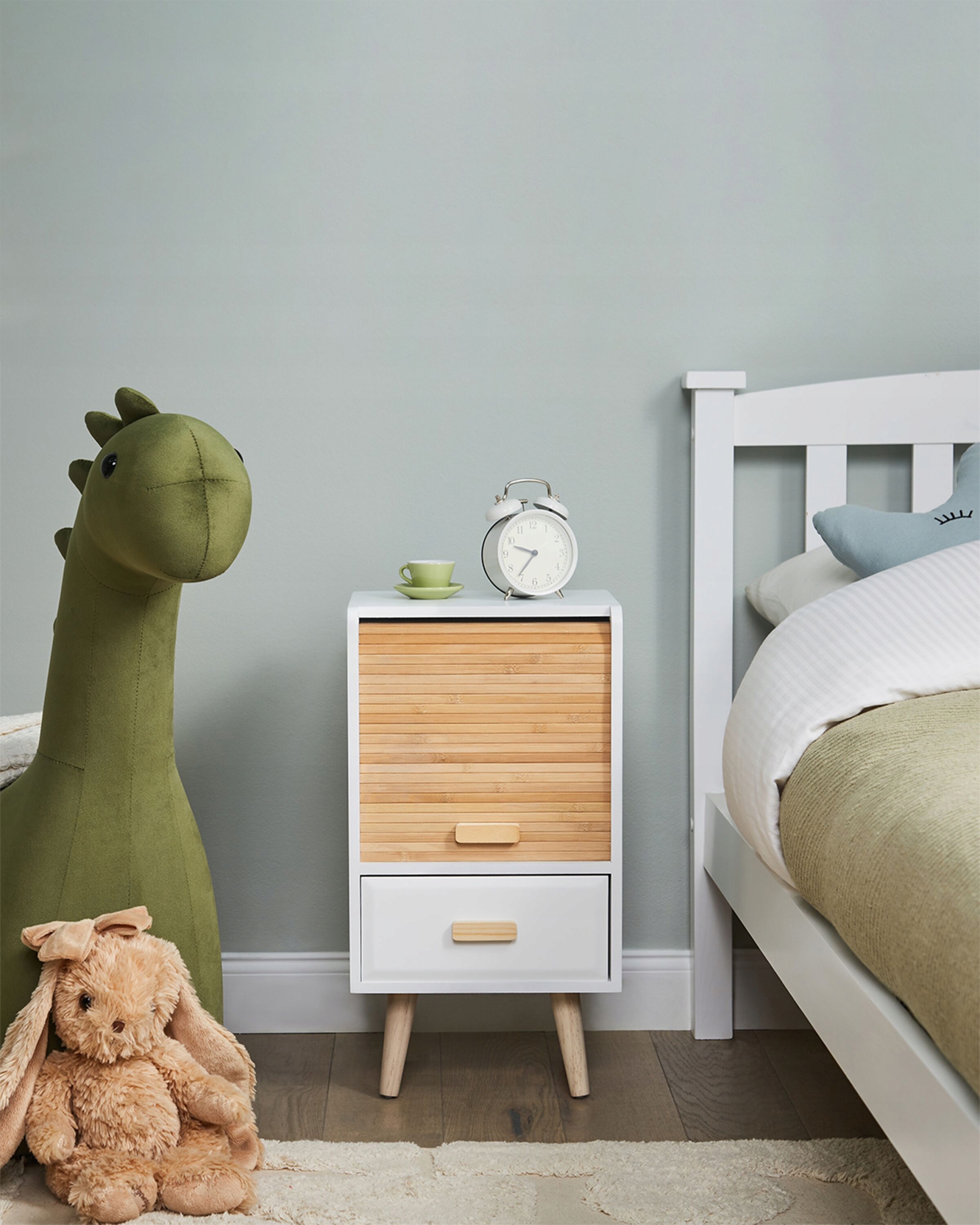 Udoskonal pokój swojego dziecka dzięki tej stylowej szafce nocnej, wyróżniającej się klasycznym białym wykończeniem i praktycznymi przesuwnymi drzwiczkami. Przemyślany design umożliwia łatwy dostęp do przechowywanych przedmiotów, zachowując jednocześnie smukłą, minimalistyczną estetykę. Dodatkowa przestrzeń w szufladach i solidne nogi sprawiają, że ta szafka jest równie praktyczna, co stylowa, a twoje dziecko będzie cieszyć się jej użytkowaniem w miarę dorastania dzięki jej prostemu designowi.