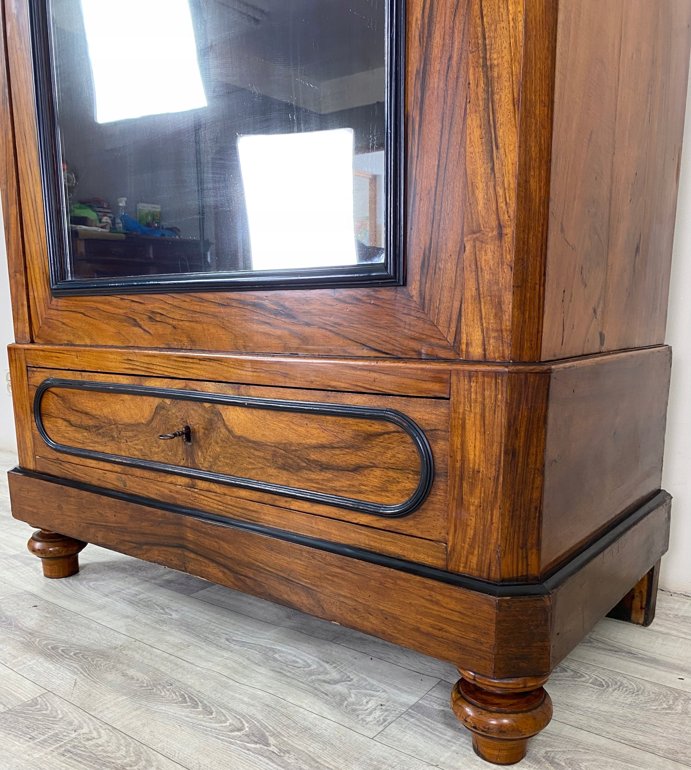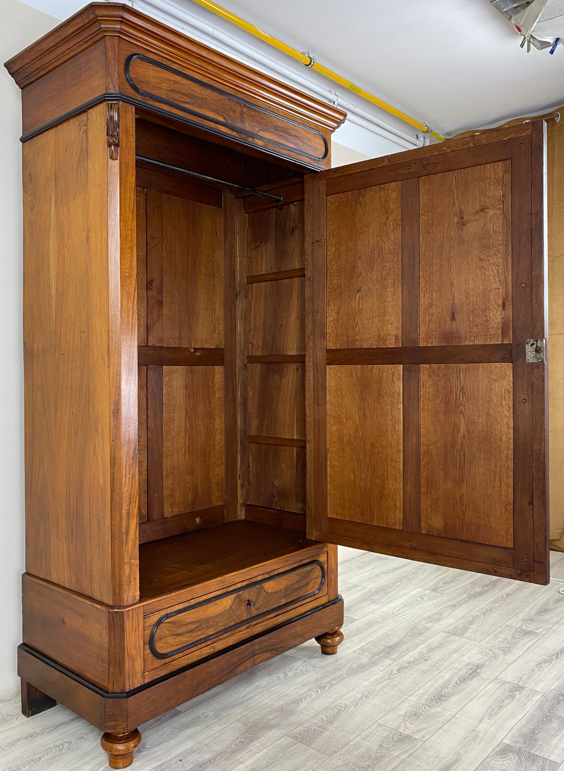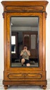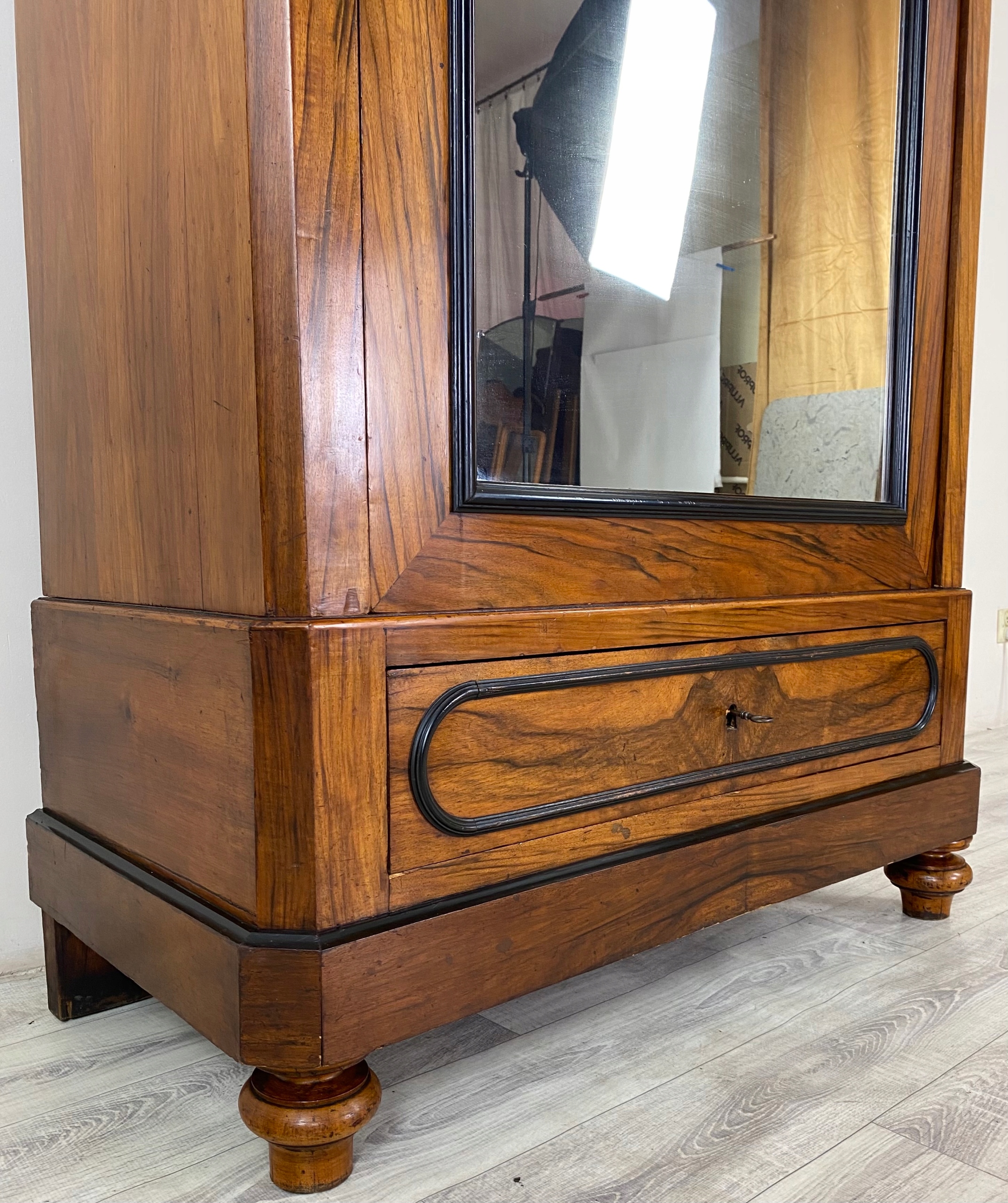 Szafa jednodrzwiowa wykonana z litego drewna orzechowego oraz fornirowanego.