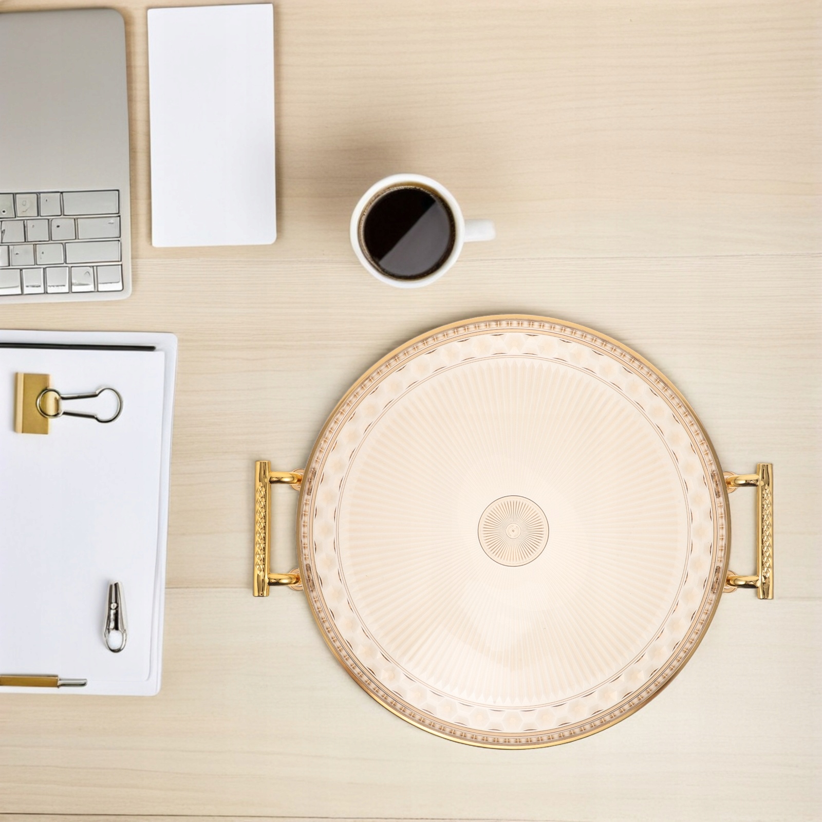 ✅Ponadczasowa estetyka: ta okrągła taca na herbatę łączy w sobie nowoczesną elegancję z praktycznością, dzięki czemu jest wszechstronnym dodatkiem do wystroju Twojego domu