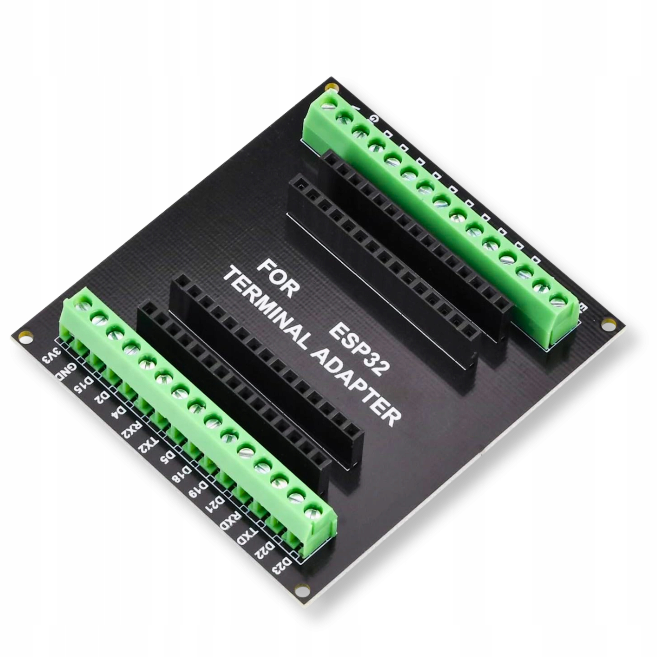 Ten adapter rozszerzeń został zaprojektowany specjalnie dla płytki deweloperskiej ESP32 Devkit V1 (wersja 30-pin, rozstaw 24mm). Wyposażony w kątowe zaciski śrubowe, zapewnia solidne i trwałe połączenia, eliminując ryzyko uszkodzenia pinów. Ułatwia podłączanie przewodów i testowanie różnych konfiguracji, idealny do prototypowania i eksperymentów.