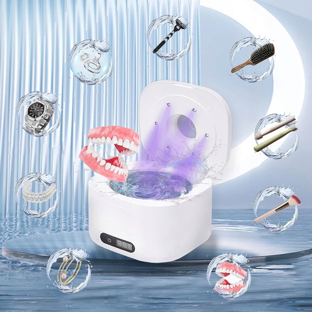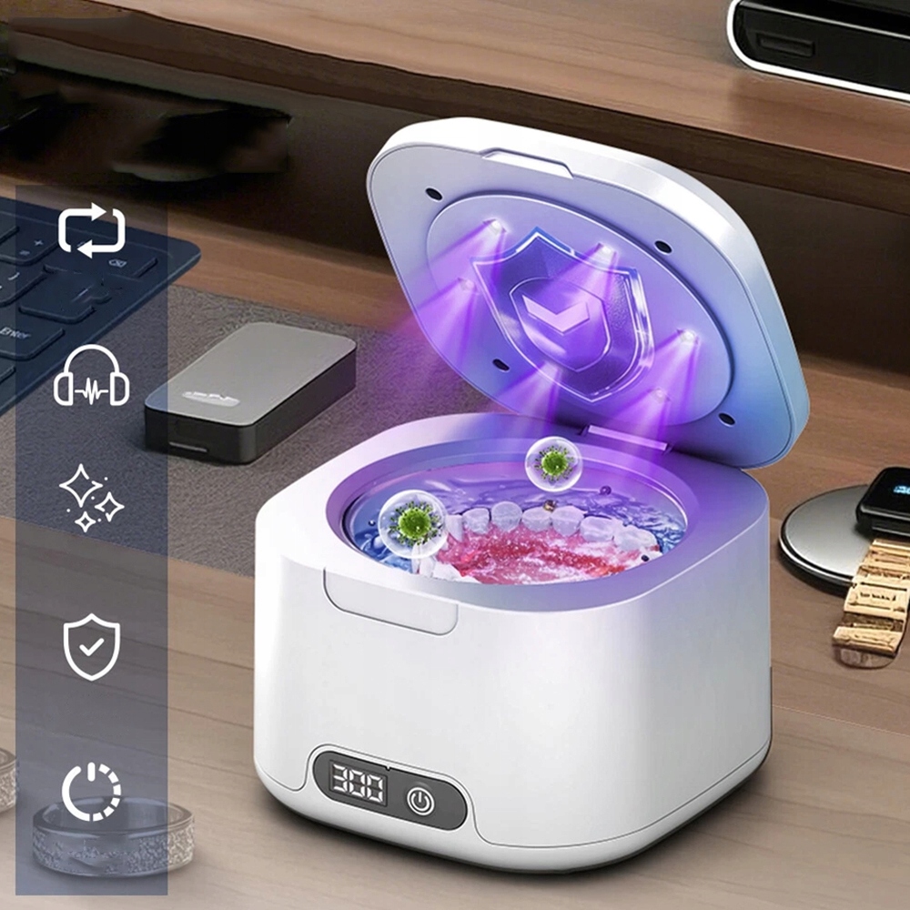 Ultradźwiękowy Czyścik do Biżuterii, Protez i Akcesoriów – 49 000Hz, 6 lamp UV, Cichy (<45 dB), 4 Tryby