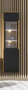 Prezentowana witryna z kolekcji AURA została wykonana w nowoczesnym stylu oraz kolorystyce. Połączenie dekoru drewnianego z matową czernią oraz szkłem będzie współgrało w różnorodnych aranżacjach wnętrz, takich jak salon i jadalnia. Prosta bryła, wyposażona w bezuchwytowe fronty powoduje, że mebel jest atrakcyjny i przyciąga wzrok.
