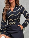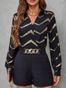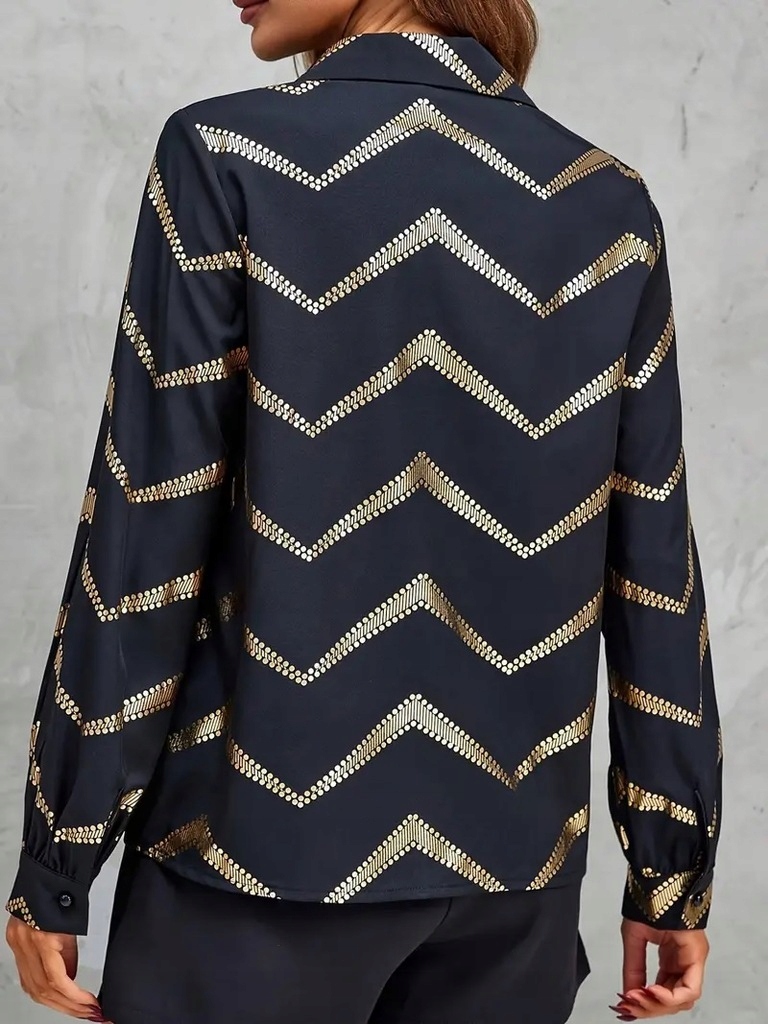 Koszula damska elegancka wzorzysta złote paski bluzka z kołnierzykiem czerń (#873x)