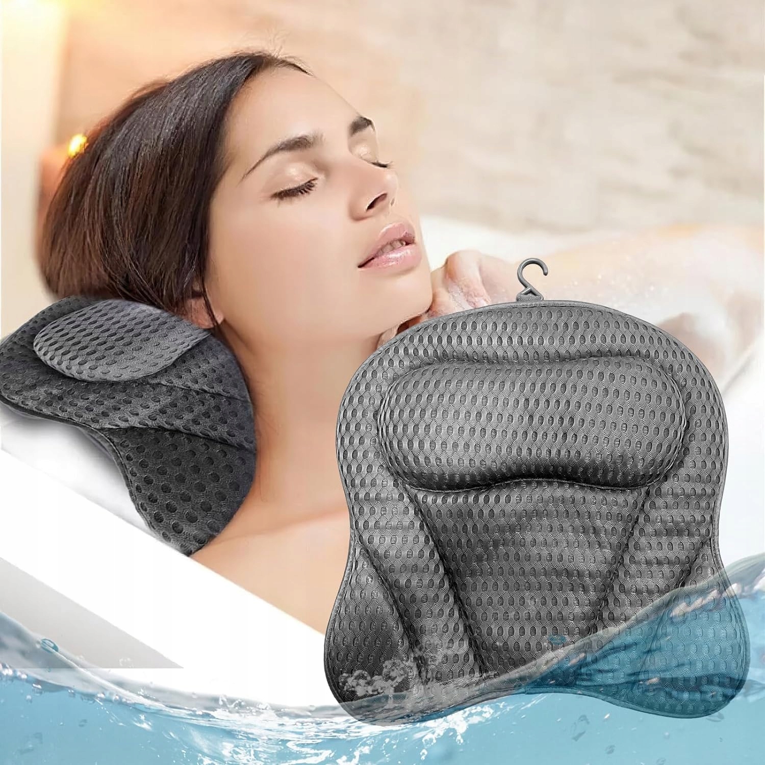 🛁🛁 Technologia 4D Air-Mesh - Poduszka do wanny jest ergonomicznie zaprojektowana, technologia 4D Air-Mesh umożliwia łatwe wnikanie wody i powietrza oraz szybkie schnięcie, co zapobiega przedostawaniu się poduszki z wnętrza i otoczenia może powodować nieprzyjemne zapachy, pleśń lub rozwój bakterii. Środek jest ponadto pogrubiony i oddychający, aby złagodzić zmęczenie fizyczne oraz zmniejszyć ból pleców i karku.