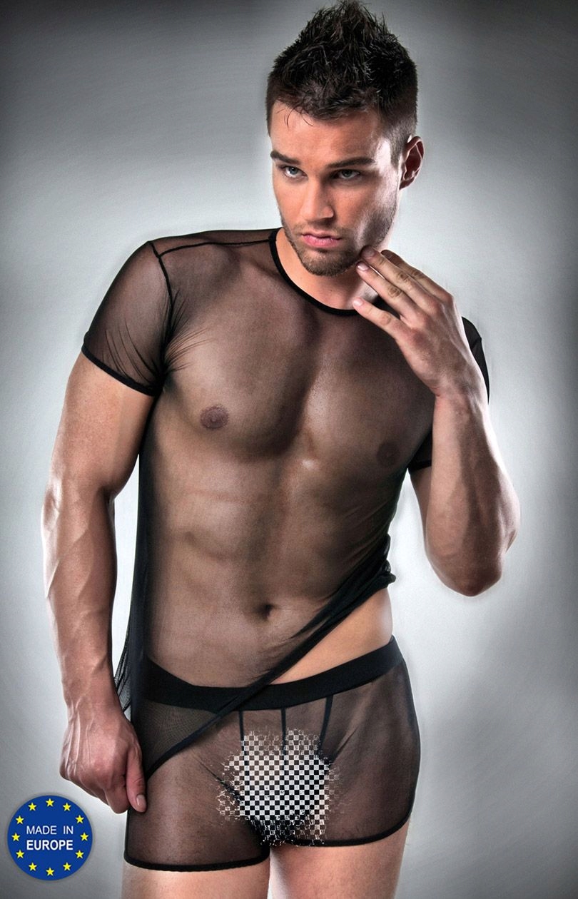 Prosty, a zarazem efektowny design modelu skutecznie przyciąga wzrok i umiejętnie uwydatnia całość męskiego ciała. Komplet męski tiulowy Set 017 stanowi idealną alternatywę dla klasycznych rozwiązań. Użyty przez nas czarny tiul zamiast standardowego materiału dodaje pikanterii do całości.