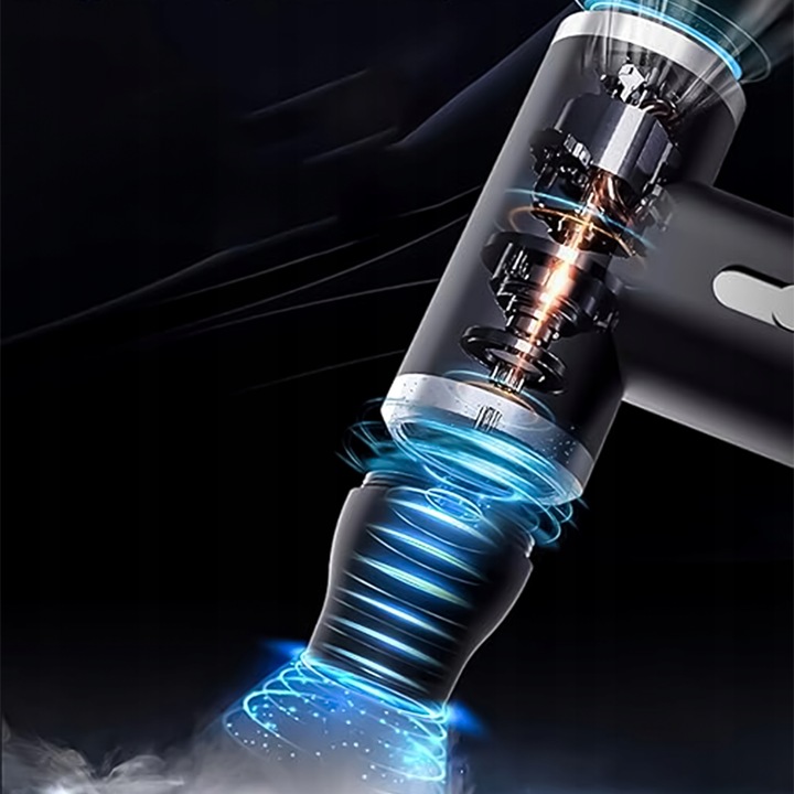 Dmuchawa posiada dużą moc, silnik rozpędza się aż do 110 000 obrotów.