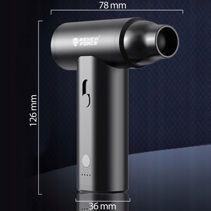 Dzięki mocnemu silnikowi dmuchawa generuje silny strumień powietrza, który skutecznie usuwa kurz, brud i inne zanieczyszczenia. Regulowana siła nadmuchu pozwala dostosować działanie urządzenia do konkretnych potrzeb – od delikatnego czyszczenia elektroniki po intensywne wydmuchiwanie liści i pyłu.