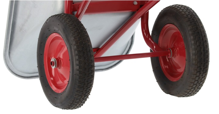 Duże, pompowane koła sprawiają, że taczkę prowadzi się lekko nawet przy dużym obciążeniu.