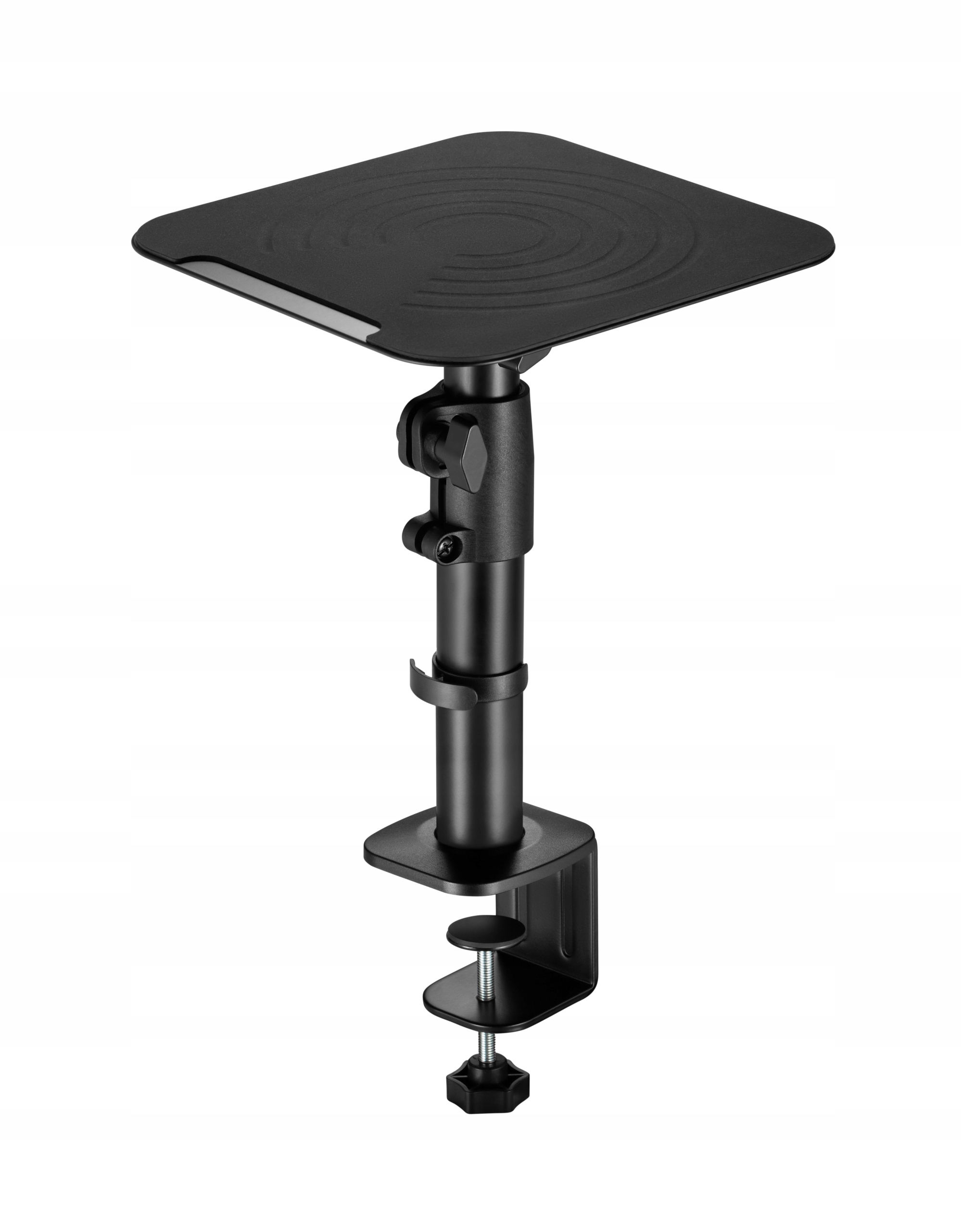 Dzięki silikonowym podkładkom redukującym wibracje możesz cieszyć się czystym, pozbawionym zakłóceń brzmieniem, a jednocześnie mieć pewność, że Twoje urządzenia są bezpiecznie zamocowane. Kompaktowy design i montaż zaciskowy oszczędza przestrzeń na biurku, a wbudowany system zarządzania kablami pomaga utrzymać porządek.