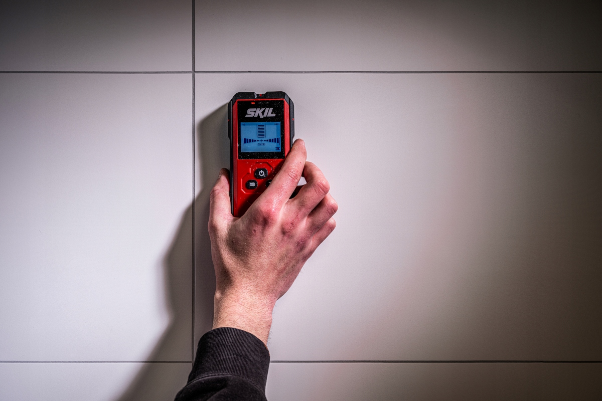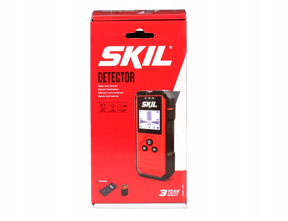 Cyfrowy wykrywacz model 1950 firmy SKIL przeznaczony do wykrywania przewodów pod napięciem i przewodów nie przewodzących prąd oraz do wykrywania metali żelaznych (np. prętów zbrojeniowych) i nieżelaznych (np. instalacje grzewcze) oraz do wykrywania drewna (np. konstrukcje drewniane).