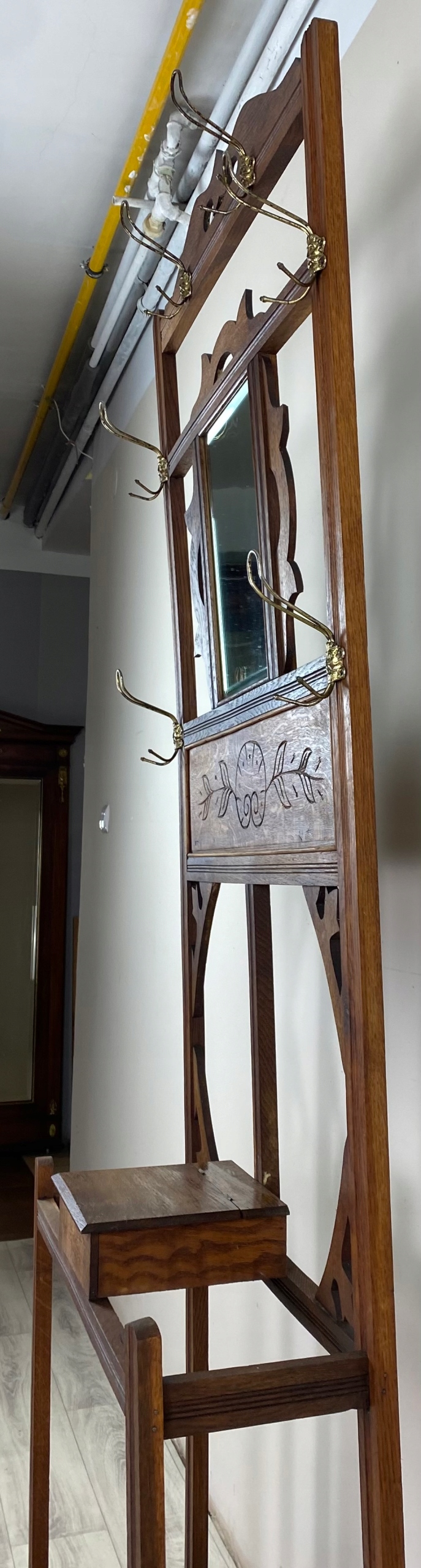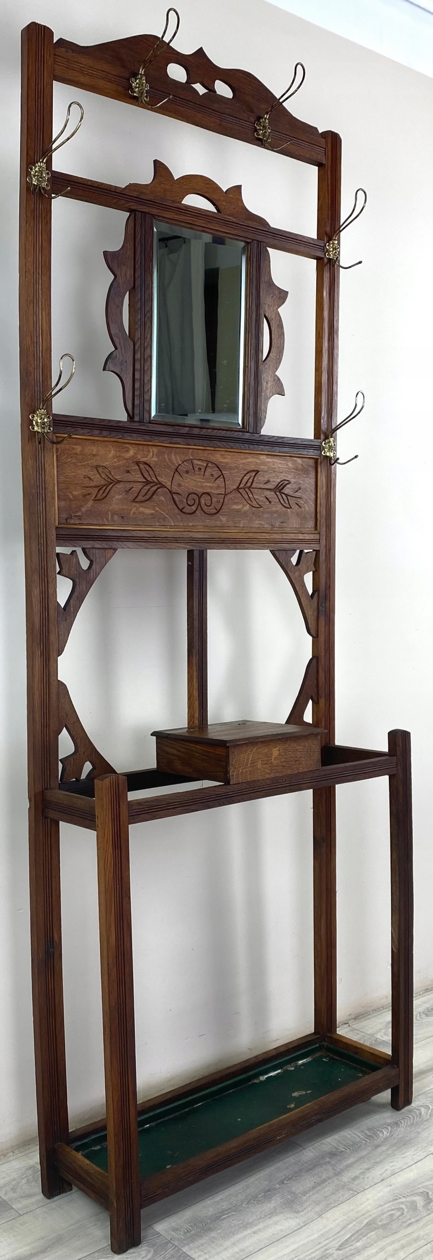 Przedmiotem aukcji jest STYLOWY WIESZAK DĘBOWY STOJĄCY GARDEROBA Z LUSTREM SECESJA
