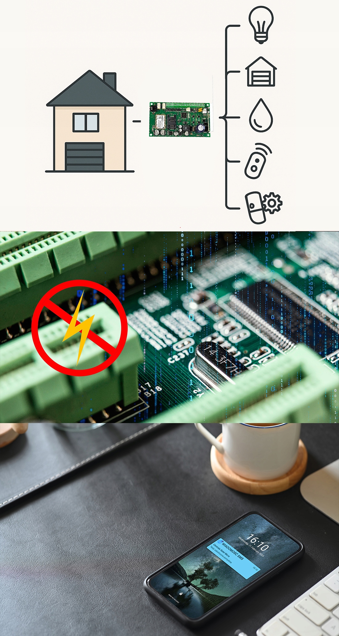 Pomimo kompaktowych rozmiarów, MICRA umożliwia sterowanie elementami automatyki (np. oświetleniem, bramą, zaworem wody) za pomocą swoich wyjść przekaźnikowych. Możesz je aktywować SMS-em, CLIP-em, pilotem lub z użyciem logiki powiązanej z czujkami.