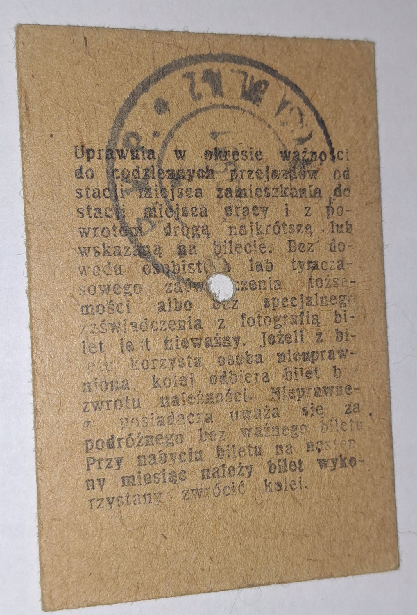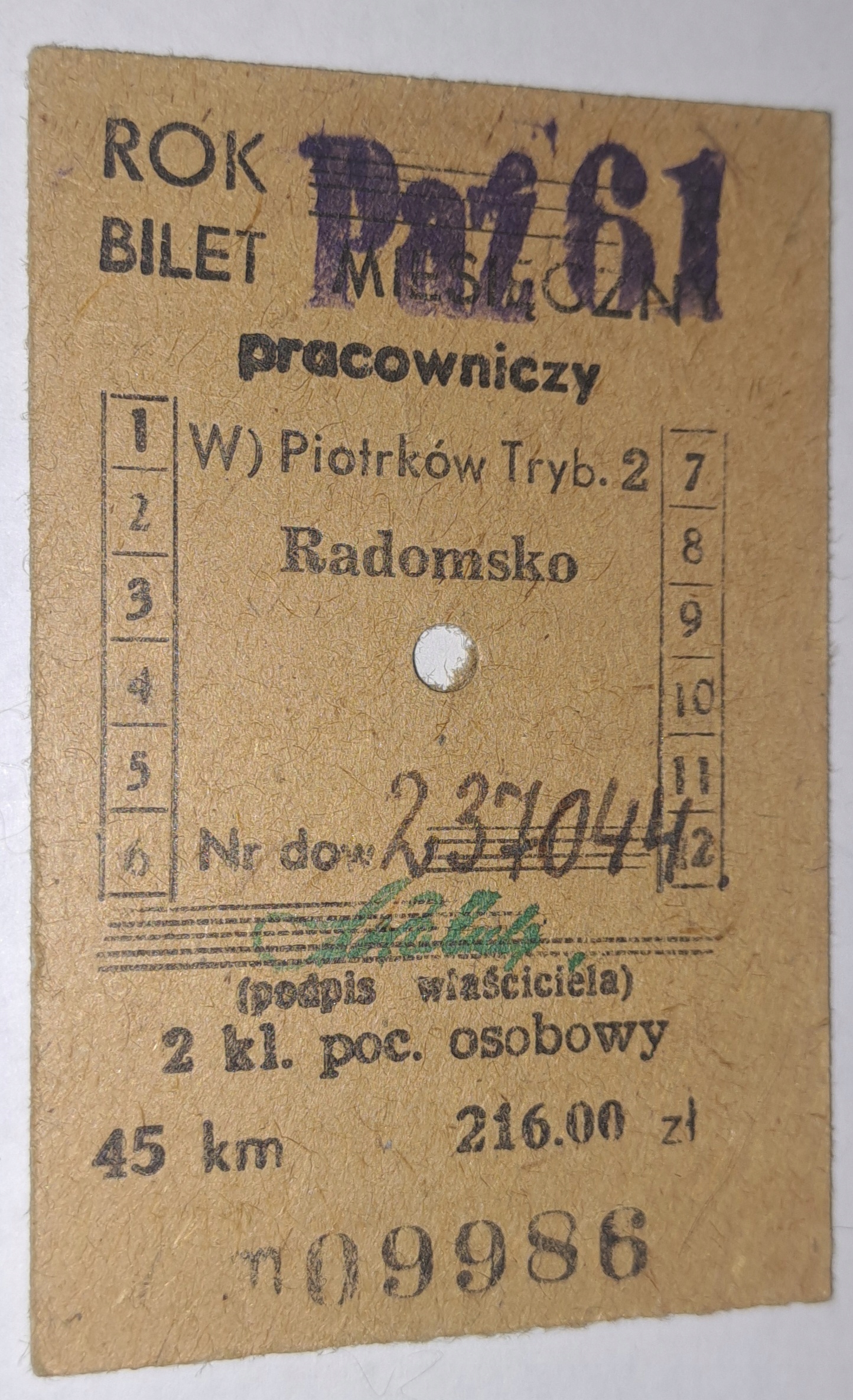 BILET KARTONIKOWY KOLEJOWY PKP PIOTRKÓW TRYBUNALSKI - RADOMSKO 10/1961