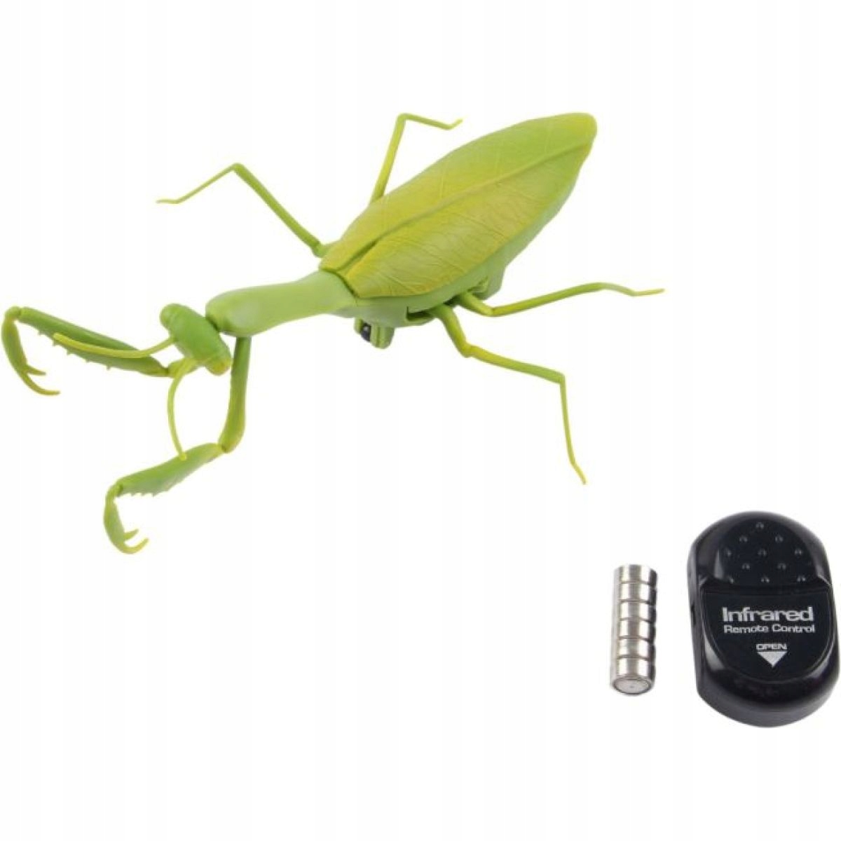 Uwaga, ta modliszka kontroluje każdy ruch! Zwinnie porusza się do przodu, do tyłu i na boki, a gdy robi się ciemno, rozświetla się jej ciało. Steruj nią za pomocą kontrolera na podczerwień o zasięgu do 8 metrów i obserwuj, jak zaskoczy każdego w pobliżu!