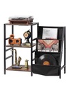 Zintegrowane ładowanie i oświetlenie: Wyposażony w wysokiej jakości listwę zasilającą umożliwiającą łatwe podłączanie różnych urządzeń oraz wyjątkową funkcję oświetlenia, która synchronizuje się z muzyką, ten stojak na odtwarzacz płyt winylowych wzbogaci Twoje doznania. Klasyczne brązowe przegrody w połączeniu z solidną ramą ze stali nierdzewnej zapewniają trwałość i styl.