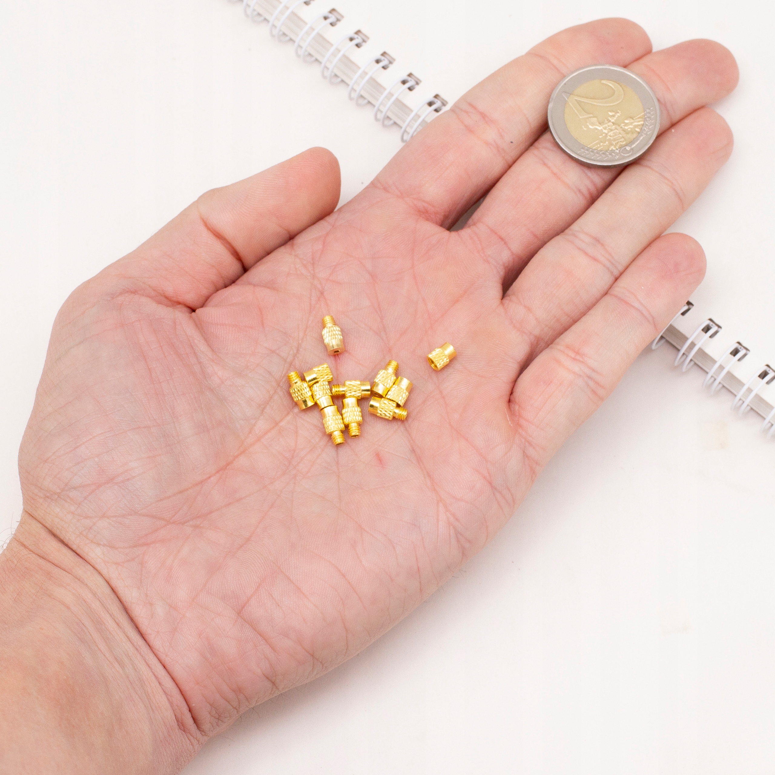 Mosiężne zapięcie typu twist to trwały i niezawodny dodatek, szeroko stosowany w produkcji biżuterii i innych produktów. Jest łatwy w użyciu i zapewnia niezawodne połączenie części. Mosiądz jako materiał gwarantuje trwałość i odporność na korozję, a metaliczny połysk nadaje produktowi stylowy i schludny wygląd.Elementy złączne wykonane są z mosiądzu, nie powodują alergii i są odporne na korozję.
