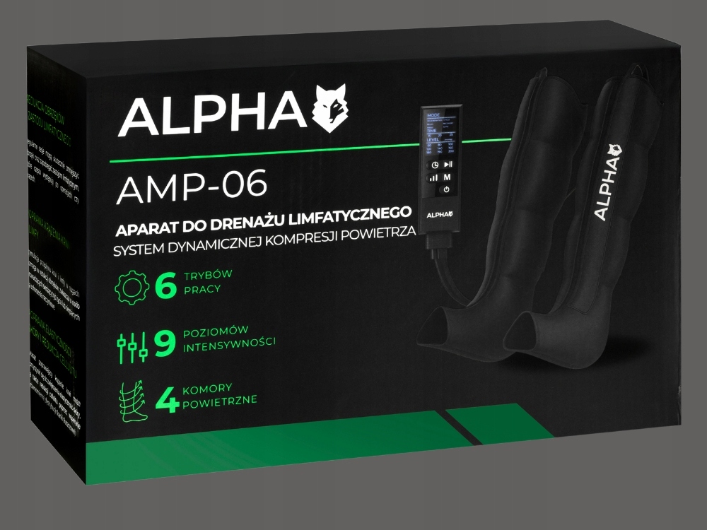 Alpha AMP-06 to nowoczesny aparat do masażu uciskowego, który pozwala w prosty sposób zadbać o lekkość, odprężenie i regenerację nóg bez wychodzenia z domu. Urządzenie wykorzystuje technologię dynamicznej kompresji powietrza, zapewniając równomierny, przyjemny ucisk oraz uczucie rozluźnienia po całym dniu lub po wysiłku fizycznym.