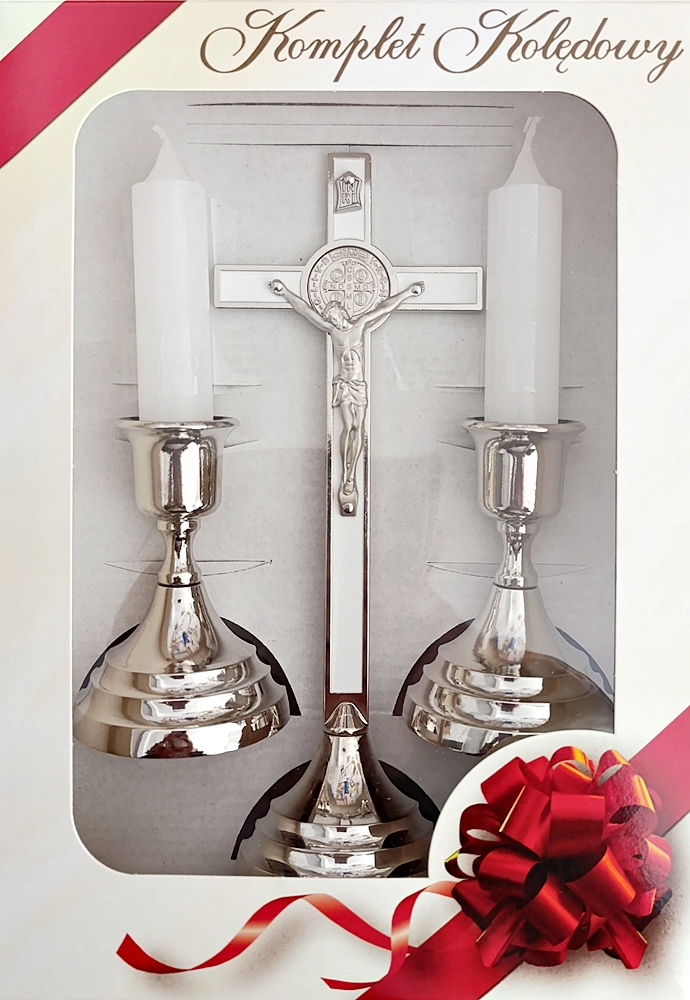 DUŻY ZESTAW KOLĘDOWY METALOWY W KOLORZE SREBRNO-BIAŁYM ZAWIERA: