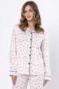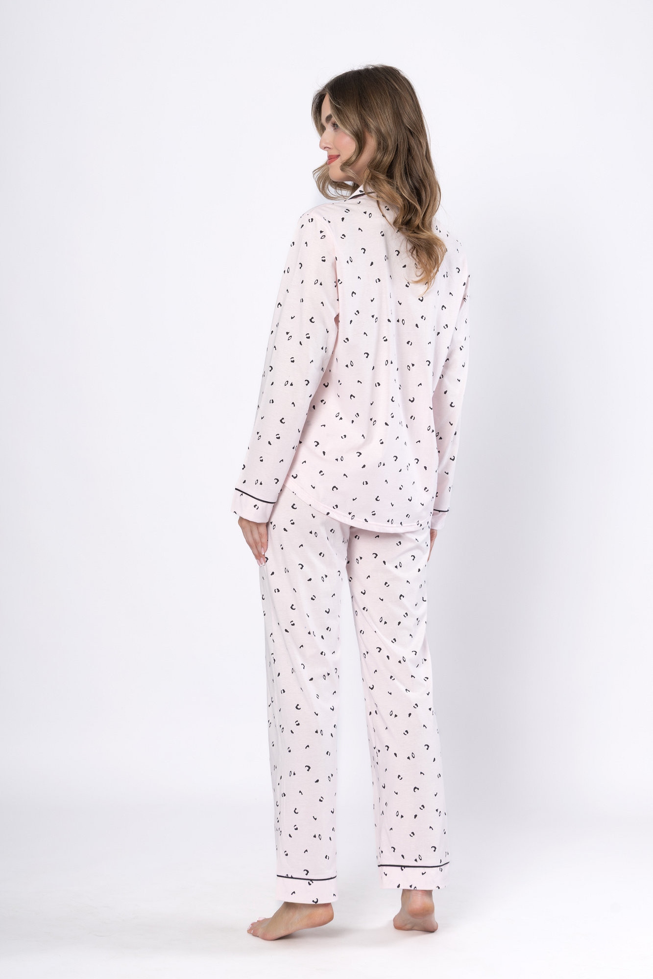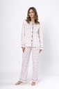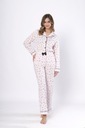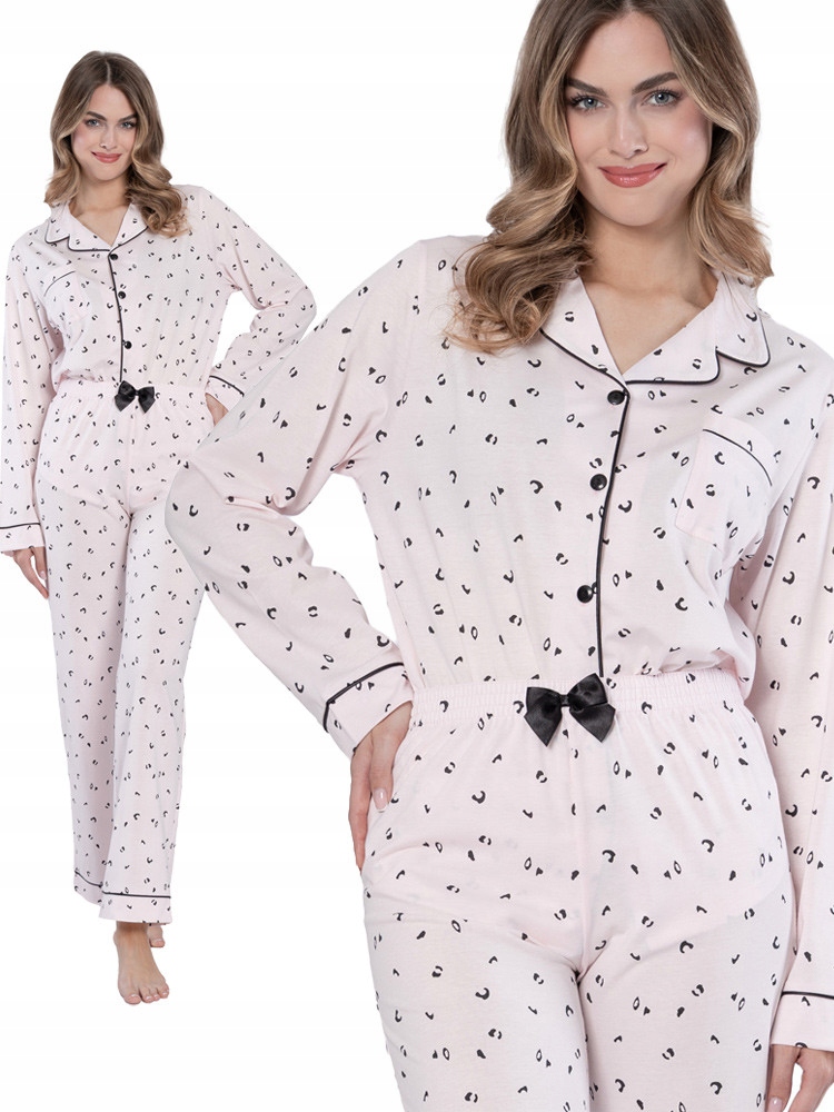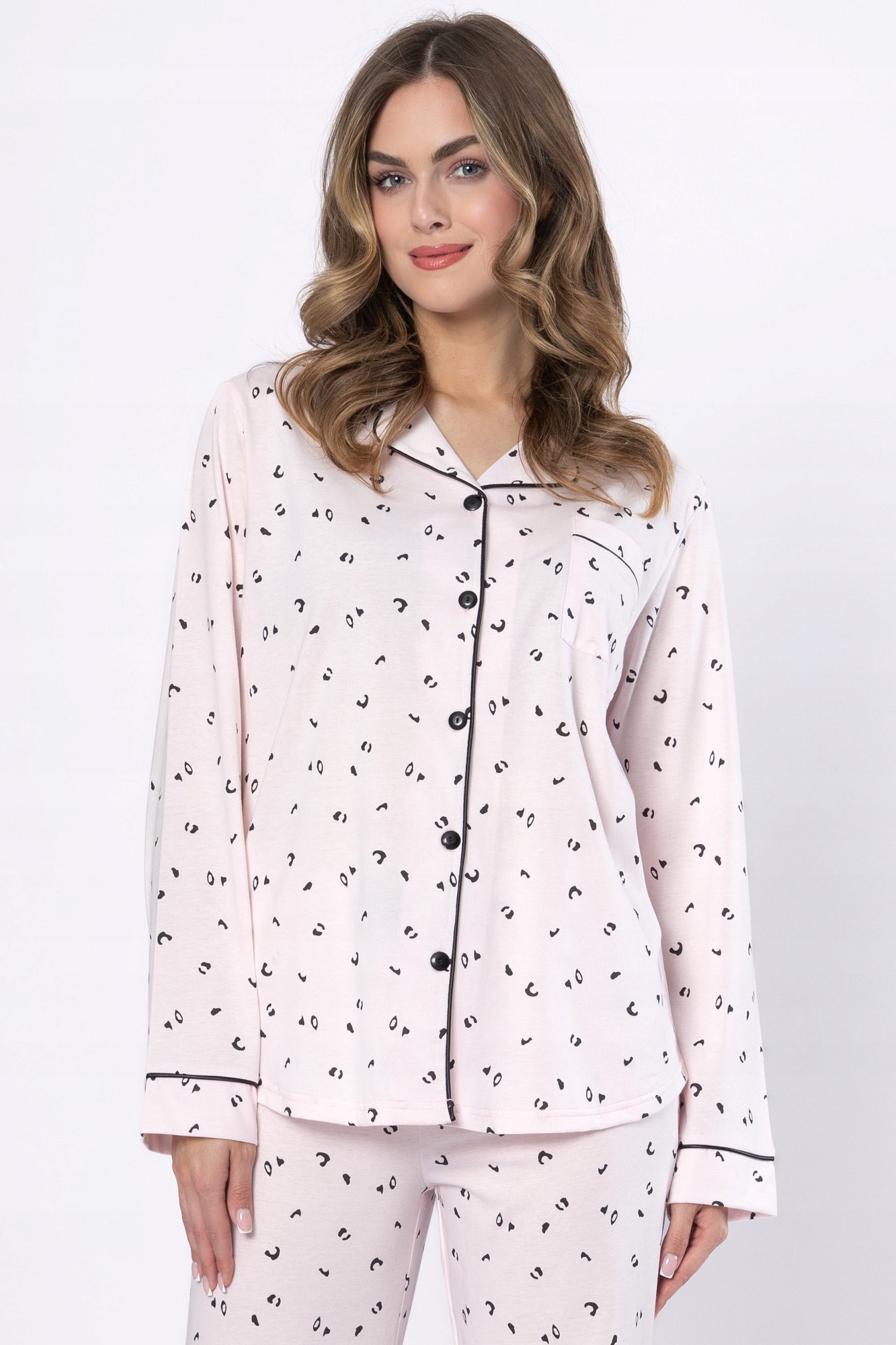 Alka to piżama o wielu cechach - klasyczna, a jednocześnie unikatowa. To delikatność i kobiecość w jednej kompozycji! Wykonana ze 100% bawełny i zachowana w przepięknym odcieniu jasnego rożu doskonale podkreśla prawdziwe, naturalne piękno każdej kobiecej urody. Całość została uszyta z dzianiny o deseniu subtelnych cętek panterki, nadając tej kompozycji wyjątkowego uroku. Góra piżamy to rozpinana bluzka na długi rękaw z mankietem. Posiada kołnierz oraz wygodne i funkcjonalne kieszenie. Dla kontrastu i podkreślenia designu, zastosowano kontrastową, atłasową lamówkę. Dolna część piżamy składa się z wygodnych długich spodni o prostej nogawce z mankietem, który również zdobi kontrastowa, atłasowa taśma. Piżama Alka to idealna propozycja dla tych pań, które cenią sobie styl i wygodę podczas snu. Jej klasyczny design, delikatna dzianina, piękny kolor i praktyczne elementy sprawiają, że jest nie tylko stylowa, ale również funkcjonalna. Jeśli szukasz piżamy, która łączy w sobie elegancję, wygodę i klasyczny urok, Alka jest właśnie dla Ciebie. Koniecznie musisz ją mieć!