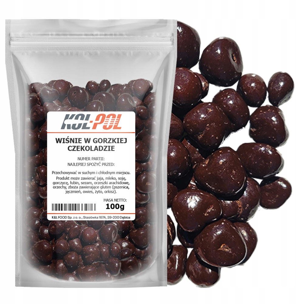 ✅ Składniki – wiśnie kandyzowane 50% (wiśnie drylowane, cukier, regulator kwasowości: kwas cytrynowy, konserwant: dwutlenek siarki), czekolada gorzka 49% (masa kakaowa, cukier, tłuszcz kakaowy, emulgator: lecytyny (soja), ekstrakt waniliowy), mieszanka glazurująca 1% (syrop glukozowy, guma arabska, szelak, olej roślinny (kokosowy, rzepakowy), dekstryna)