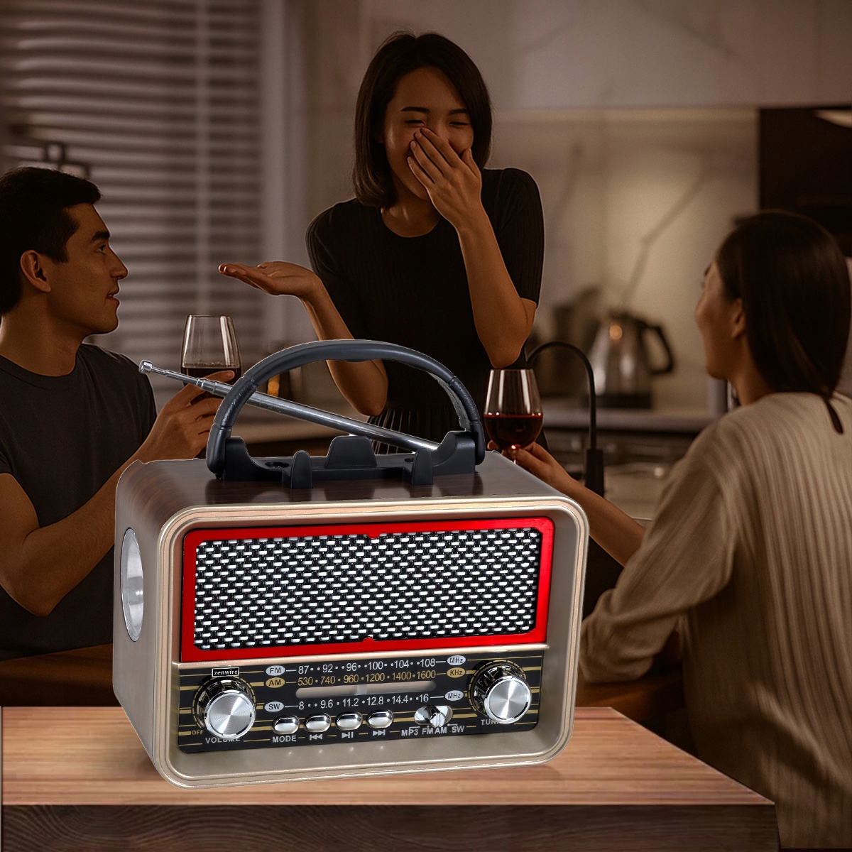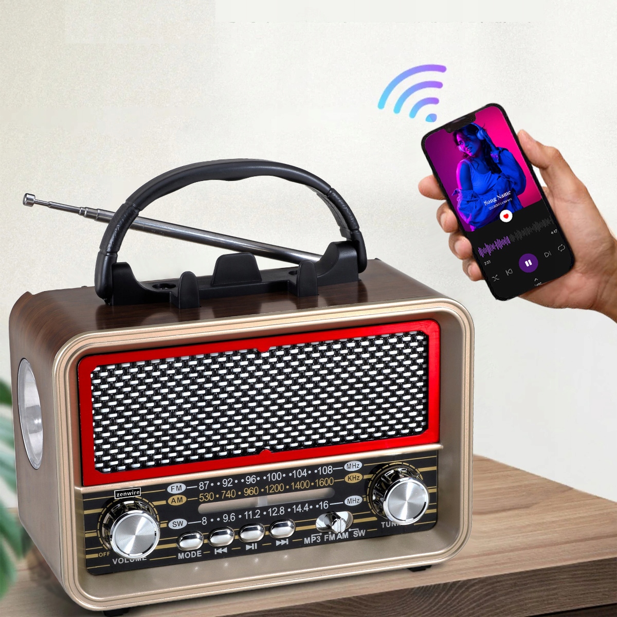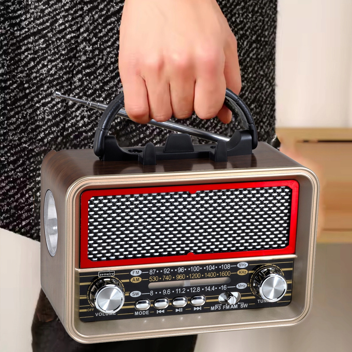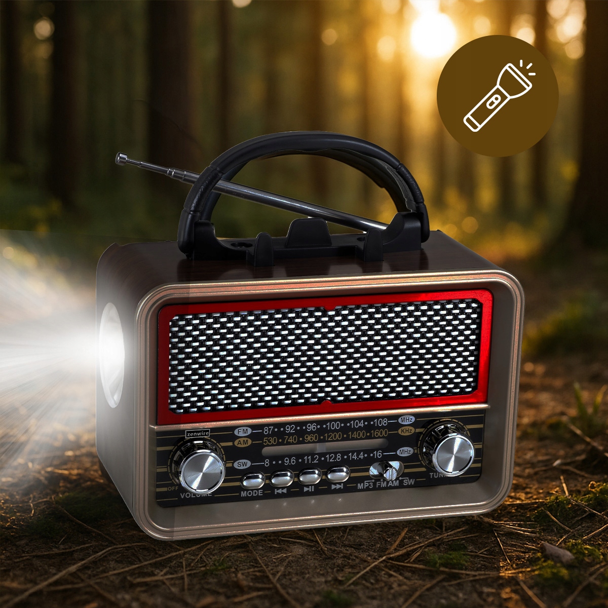 Radio Zenwire Vibe BT-S060 łączy styl retro z nowoczesnymi funkcjami. Oferuje radio FM/AM/SW, może działać jako przenośny głośnik Bluetooth odtwarzając muzykę z telefonu bezprzewodowo. Możliwość odtwarzania z USB, kart micro SD i TF, AUX. Posiada wbudowaną Latarkę LED zapewniając dodatkowe oświetlenie na przykład na kempingu. Dzięki panelowi solarnemu i wymiennej baterii w zestawie sprawdzi się w domu, kuchni, na budowie, warsztacie, ogrodzie czy w podróży, zapewniając mobilność, dostęp do muzyki, radia i światła oraz niezależność od prądu. Ergonomiczna wbudowana rączka ułatwia przenoszenie oraz działa jako wygodna podstawka na telefon.