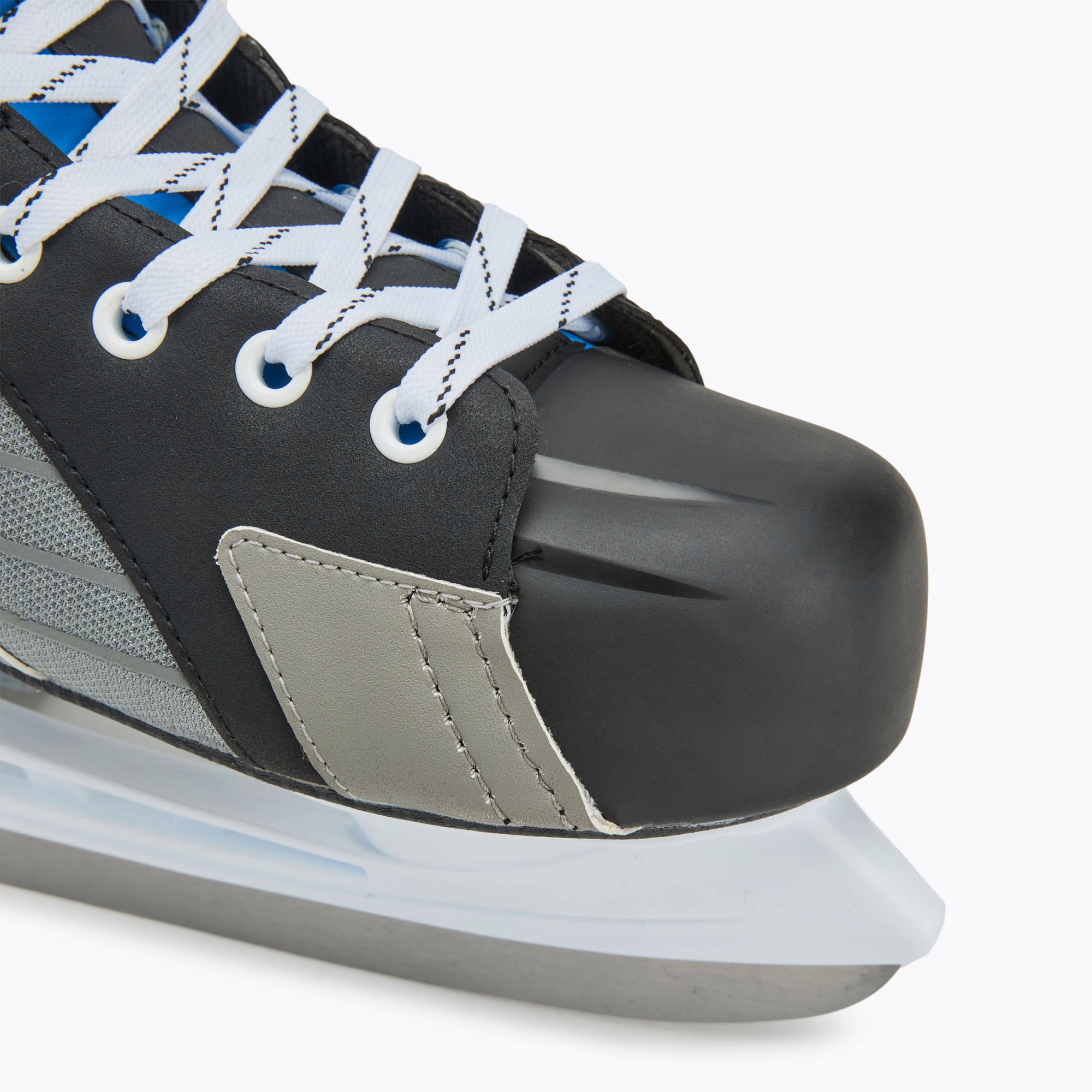 W modelu Sutter zastosowano wzmocnione strefy w okolicach kostki, które zwiększają stabilność i bezpieczeństwo podczas jazdy. Dzięki temu łyżwy chronią przed kontuzjami i pozwalają początkującym graczom czuć się pewnie na lodzie.
