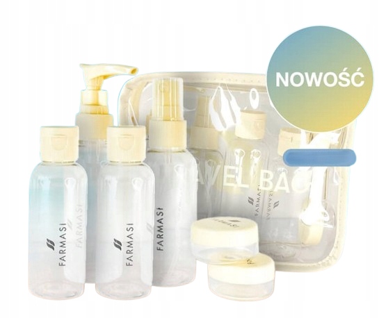 Odkryj idealne towarzystwo w każdej podróży. Zestaw opakowań podróżnych Farmasi. Set łączy w sobie komplet pojemników w eleganckiej przezroczystej kosmetyczce, idealnej do łatwego i bezpiecznego przechowywania produktów kosmetycznych. Ten praktyczny zestaw zawiera pojemniki i opakowania spełniające wymagania podczas podróży lotniczych. Podróżuj stylowo i transparentnie, a Twoje ulubione kosmetyki będą zawsze pod ręką.