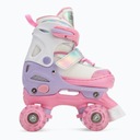 Model został wyposażony w cztery kółka o średnicy 54x32 mm, które zapewniają doskonałą stabilność i kontrolę nad jazdą. Dzięki szerokiemu profilowi dziecko łatwiej utrzymuje równowagę, co czyni wrotki doskonałym wyborem dla początkujących. Optymalna wielkość kółek sprawia, że jazda jest płynna, a jednocześnie dobrze dostosowana do niewielkich, dziecięcych stóp.