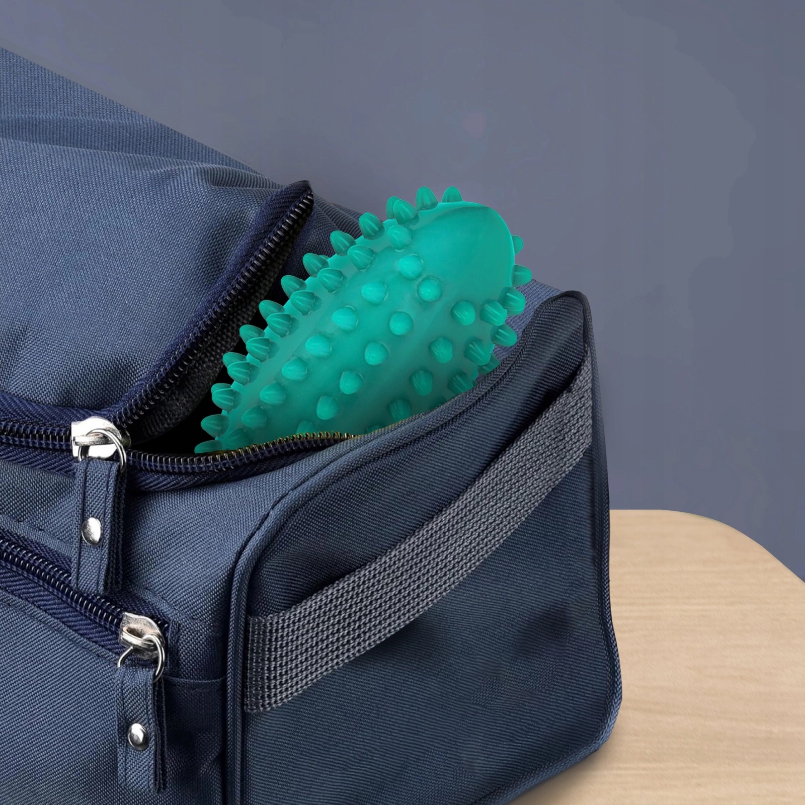 Rozluźnij napięte mięśnie z piłeczką sensoryczną do masażu 4FIZJO. Została ona wykonana z trwałego materiału, który jest łatwy w czyszczeniu. Dodatkowo na fasolce rehabilitacyjnej znajdują się wypustki sensoryczne pozwalające przeprowadzić zabiegi akupresurowe w domowym zaciszu. Przy takim punktowym masażu stożkowe kolce pobudzają receptory czuciowe i poprawiają ukrwienie. Tym samym uzyskany optymalny ucisk pozwala zmniejszyć napięcia mięśniowe czy zminimalizować ból.