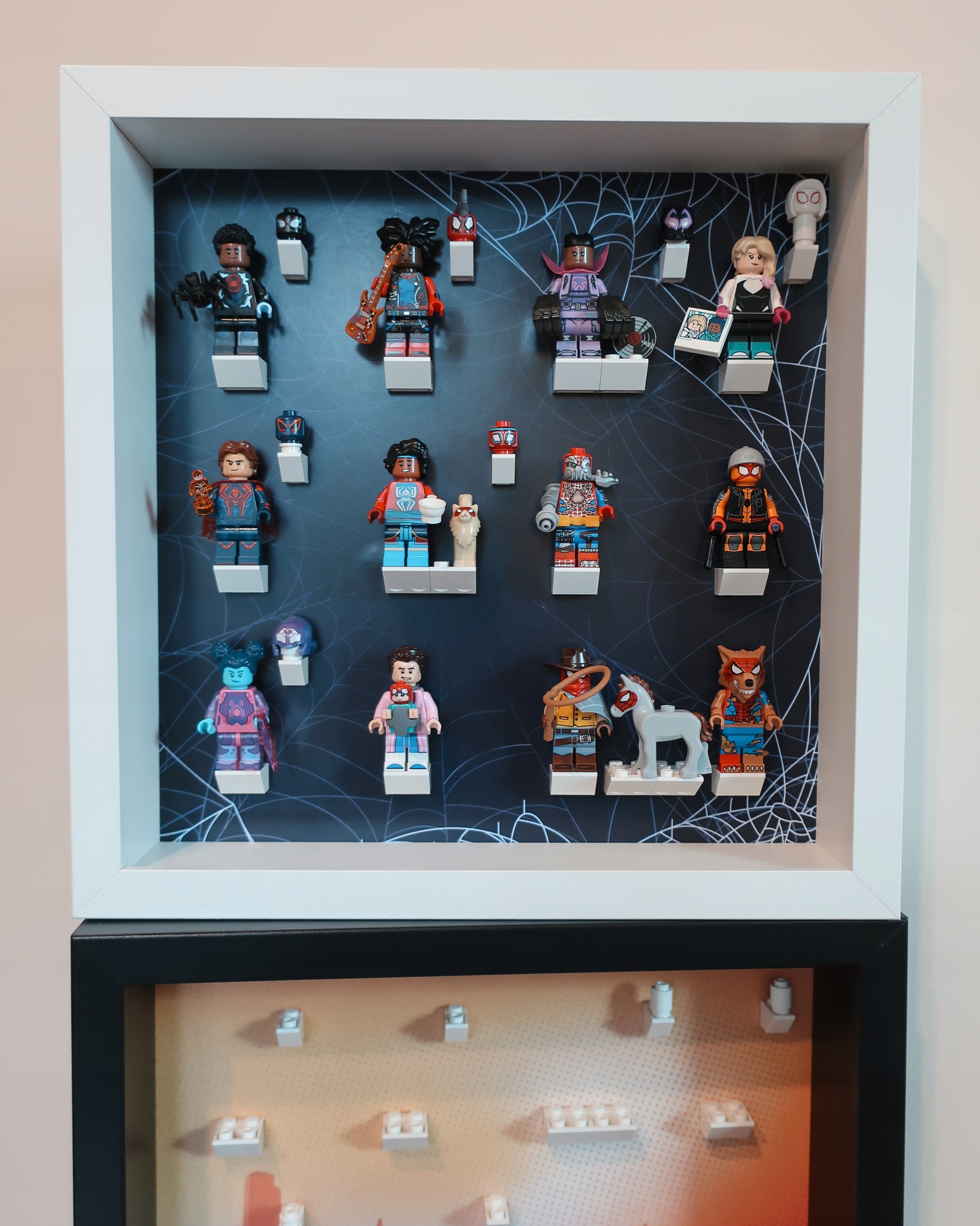 Ramka przeznaczona do minifigurek z klocków z serii Lego 71050 Spider-Man: Poprzez multiwersum. Mieści 12 figurek z kolekcji.