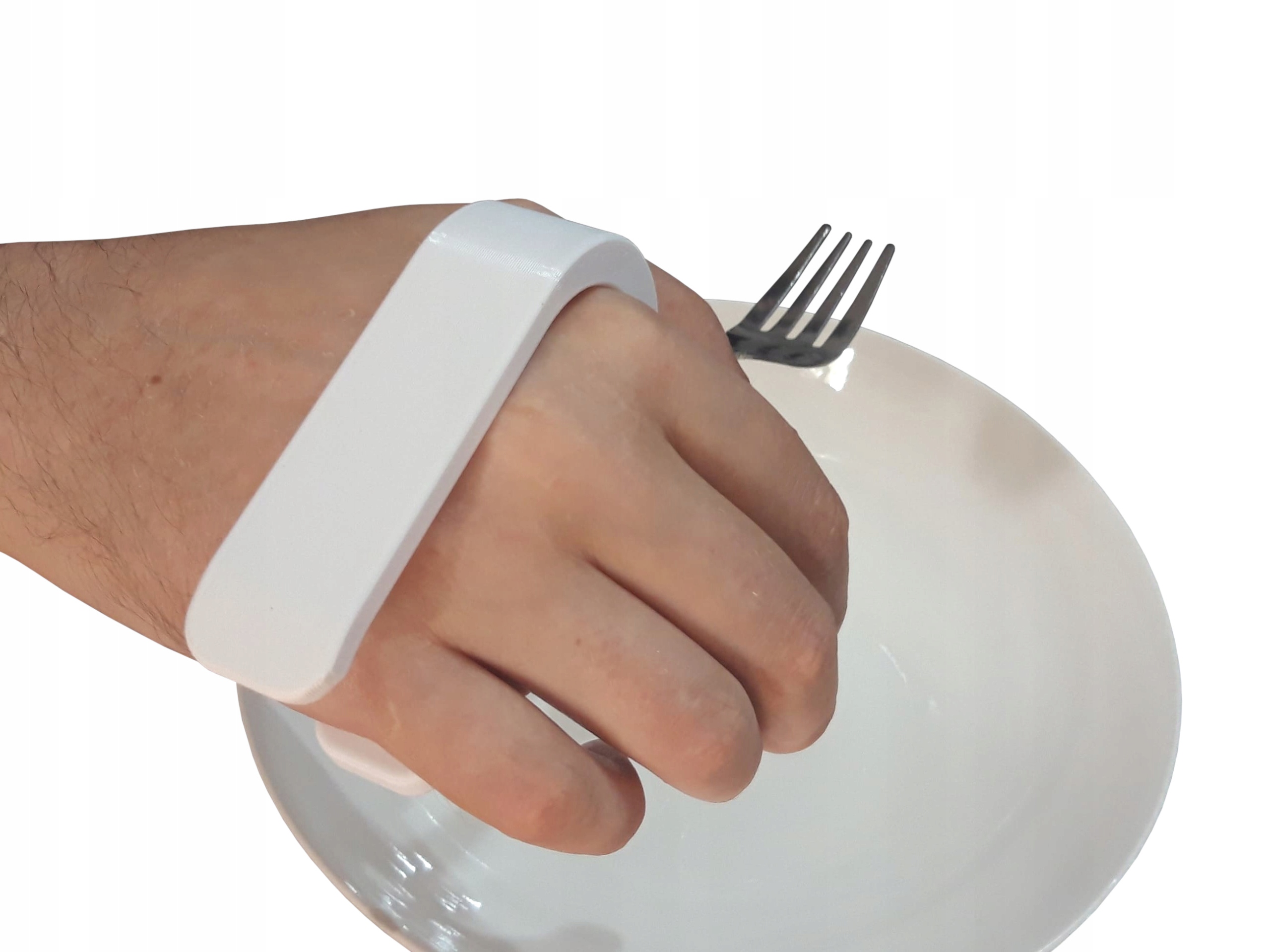 Ten mały przyrząd umożliwia trzymanie sztućców przez osoby z całkowitym brakiem sprawności palców.