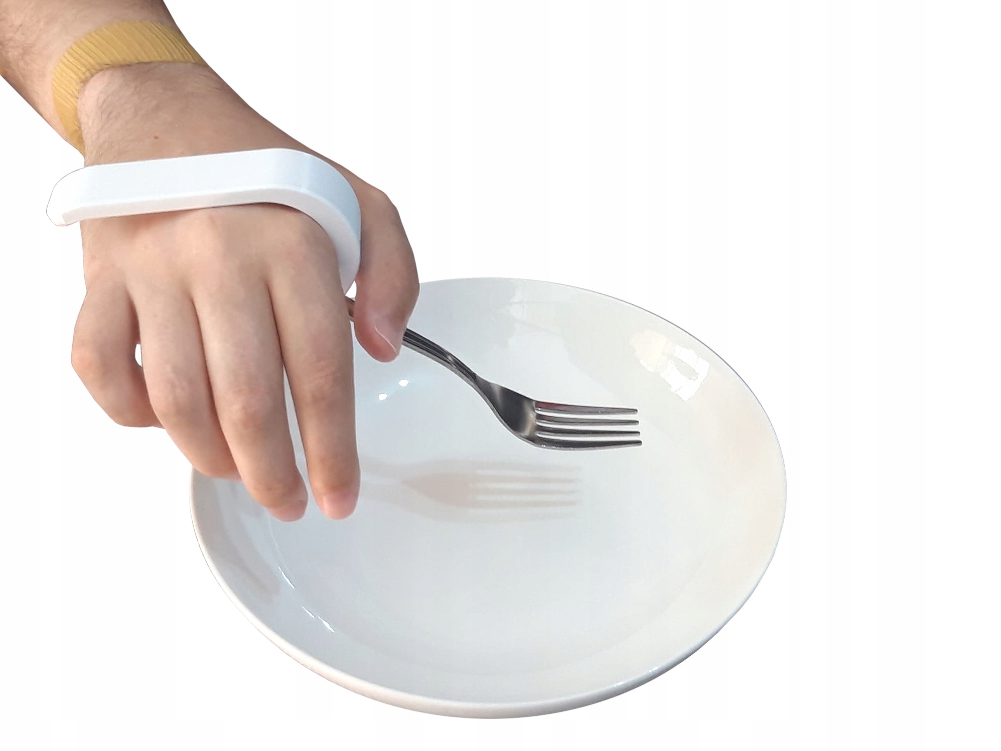 Ten mały przyrząd umożliwia trzymanie sztućców przez osoby z całkowitym brakiem sprawności palców.
