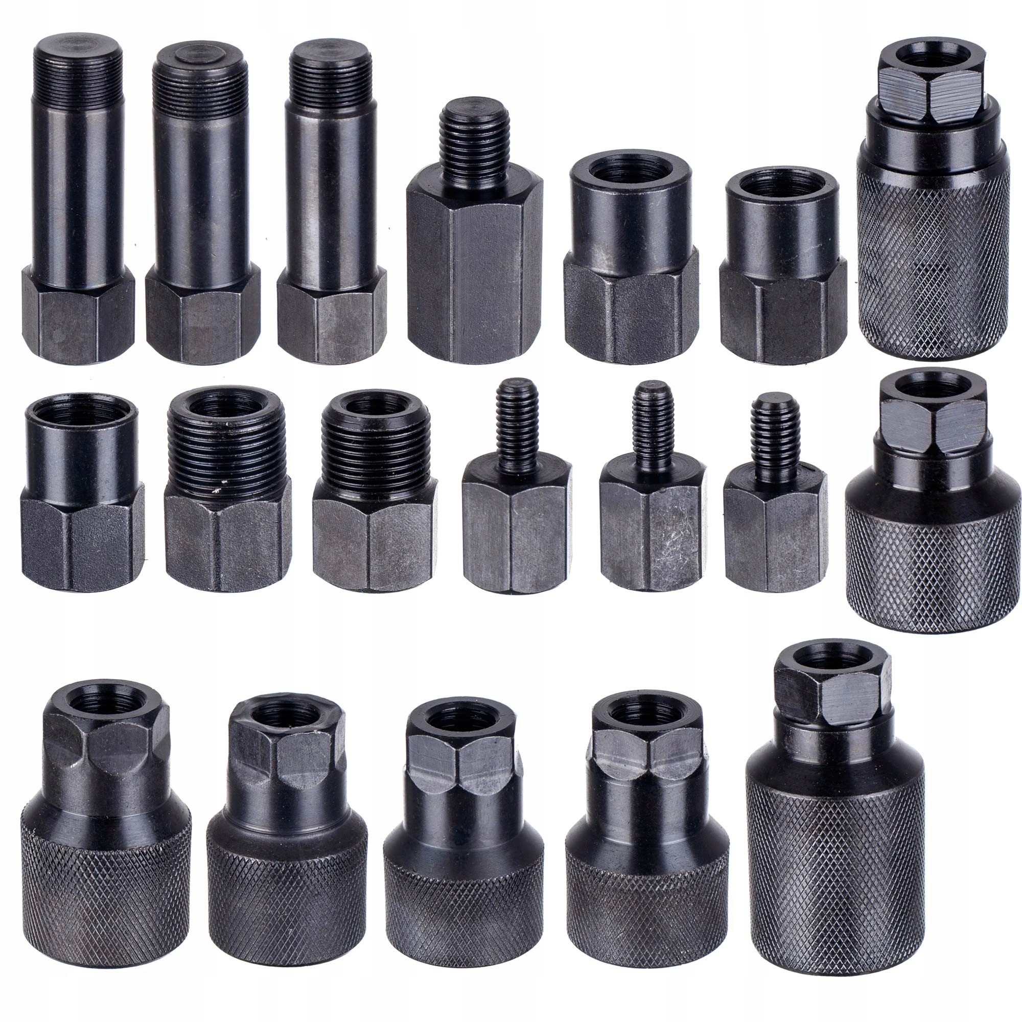 Zestaw zawiera różne rodzaje adapterów - pasuje do najczęściej instalowanych wtryskiwaczy oleju napędowego.