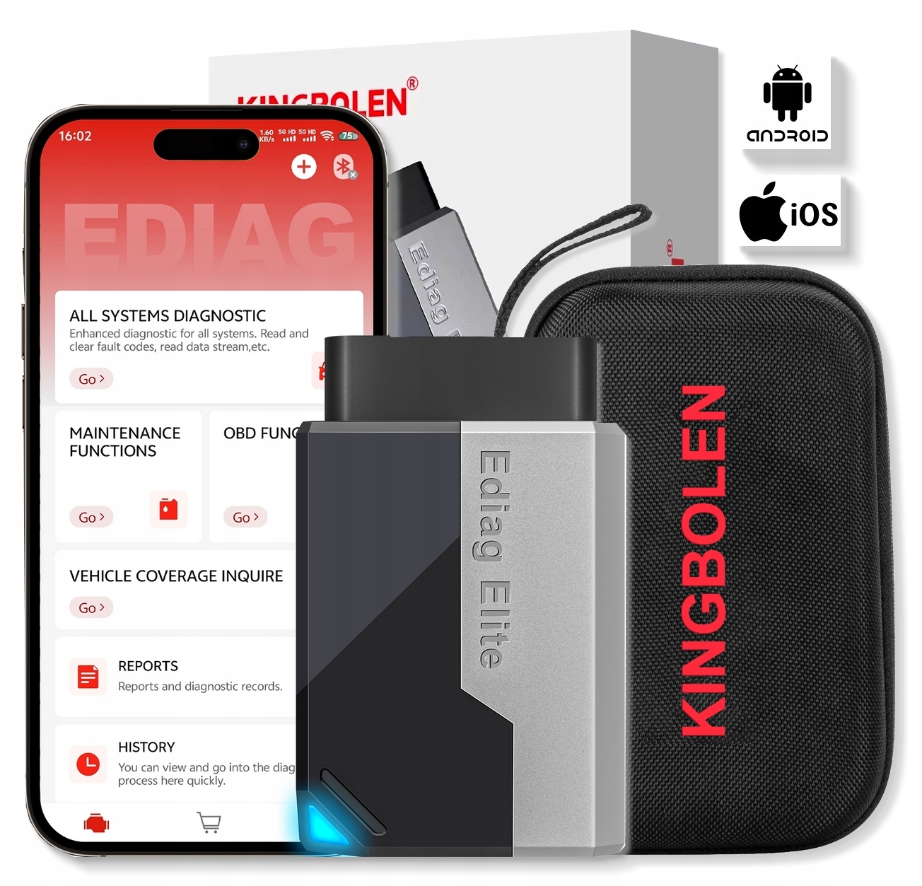 KINGBOLEN EDIAG ELITE to zaawansowany interfejs diagnostyczny przeznaczony do samochodów osobowych i dostawczych. Urządzenie współpracuje z systemami Android oraz iOS, gwarantując łatwą obsługę za pomocą aplikacji mobilnej.