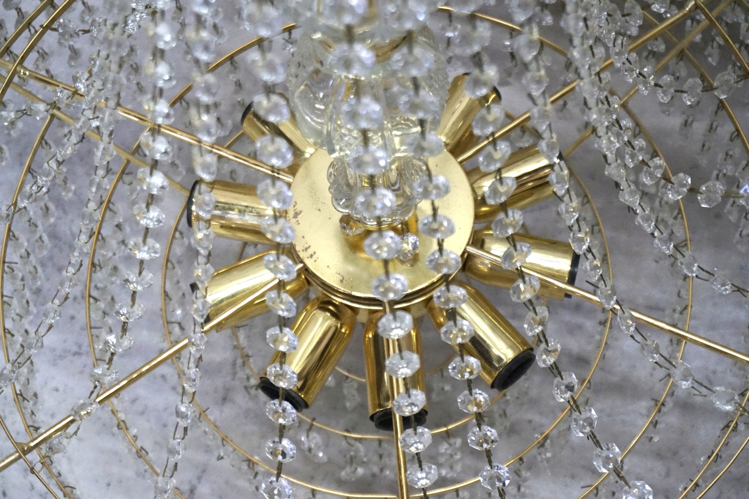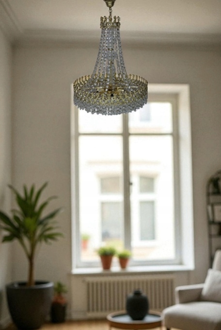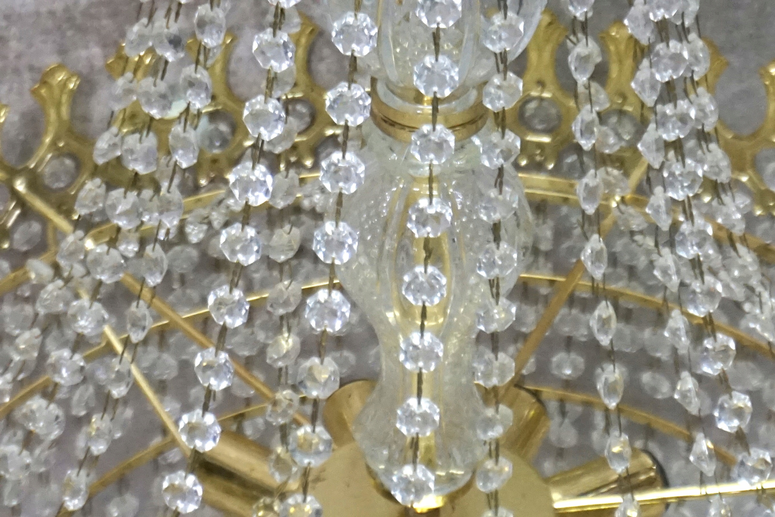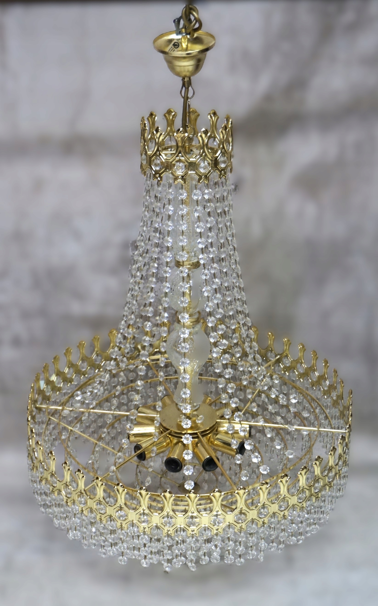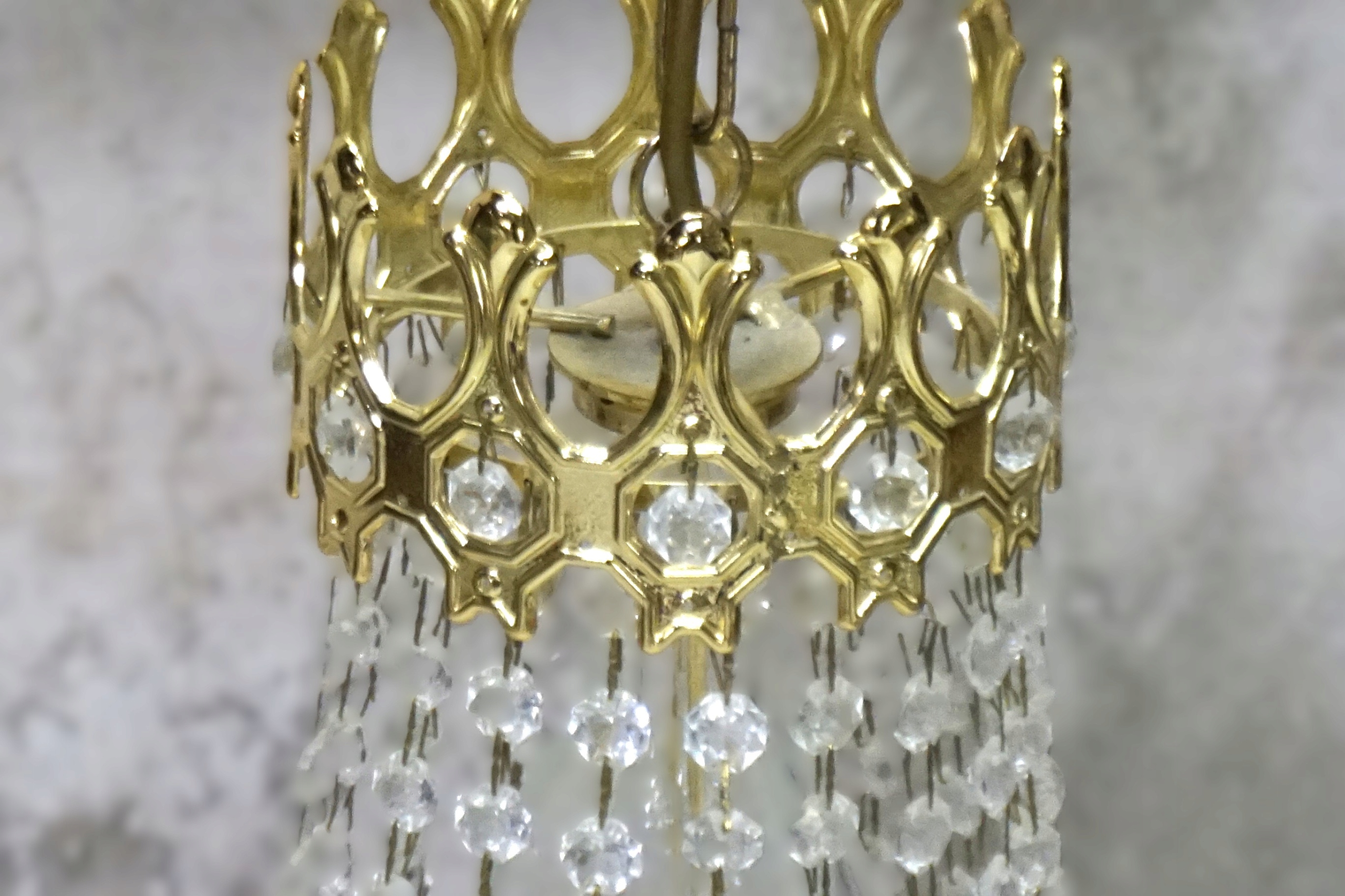 Żyrandol mosiężno- mosiądzowany z mnóstwem mieniących szklanych kryształków-