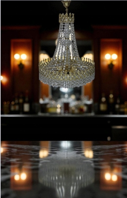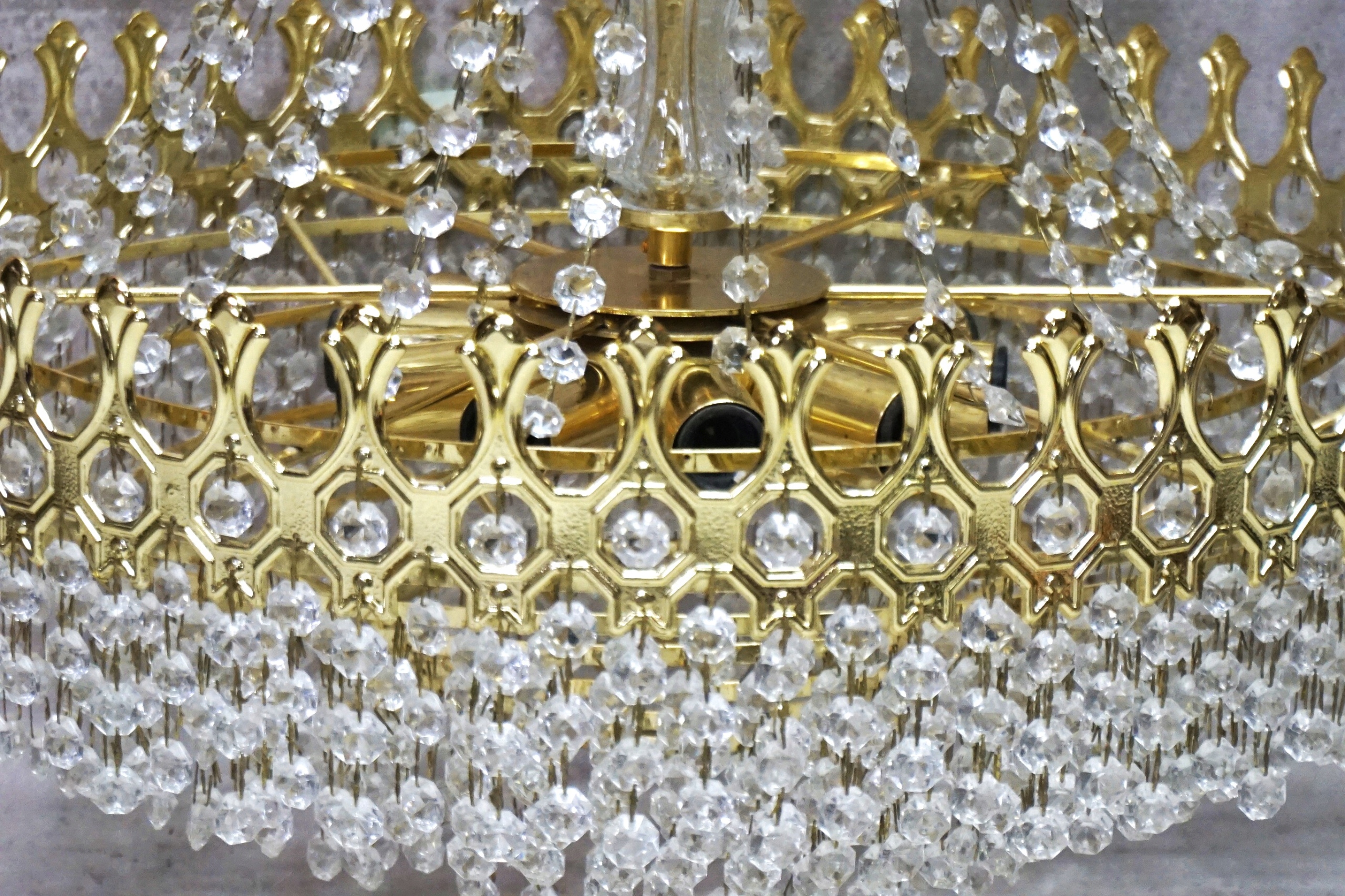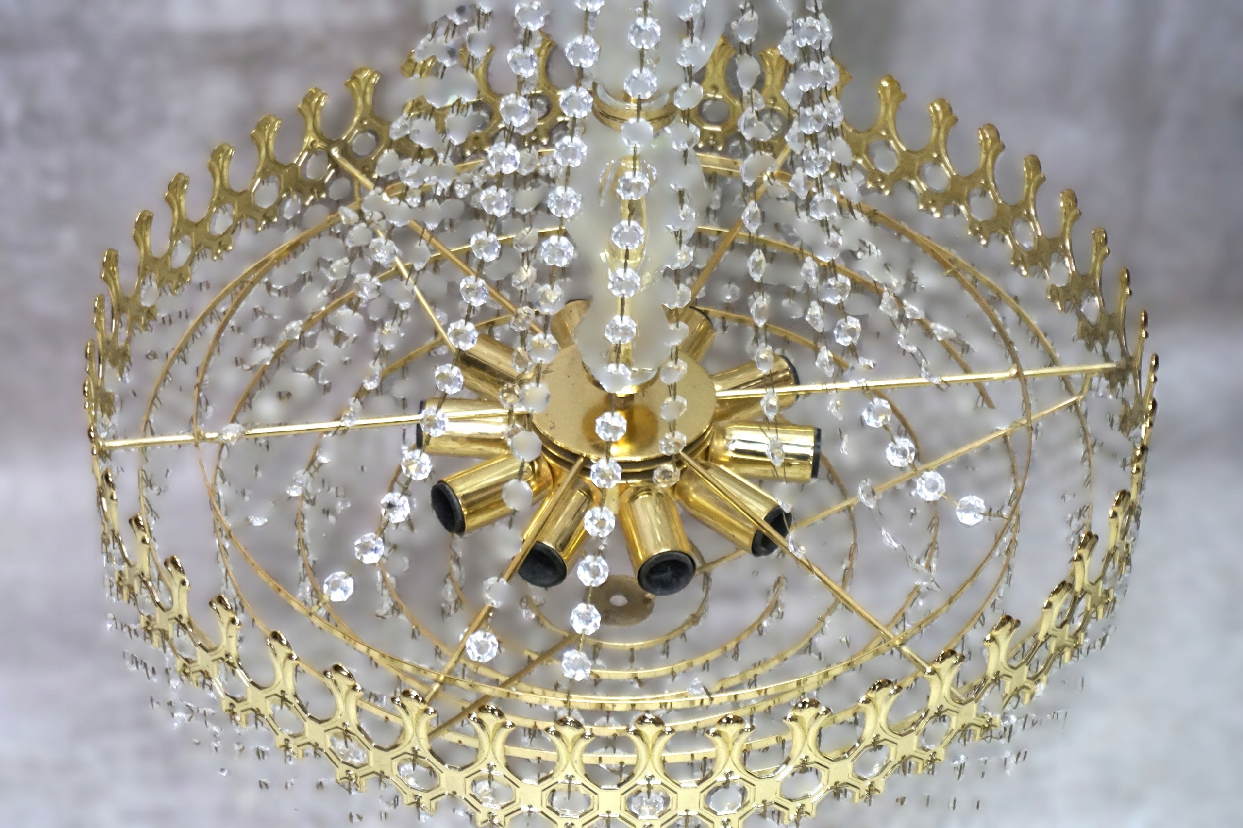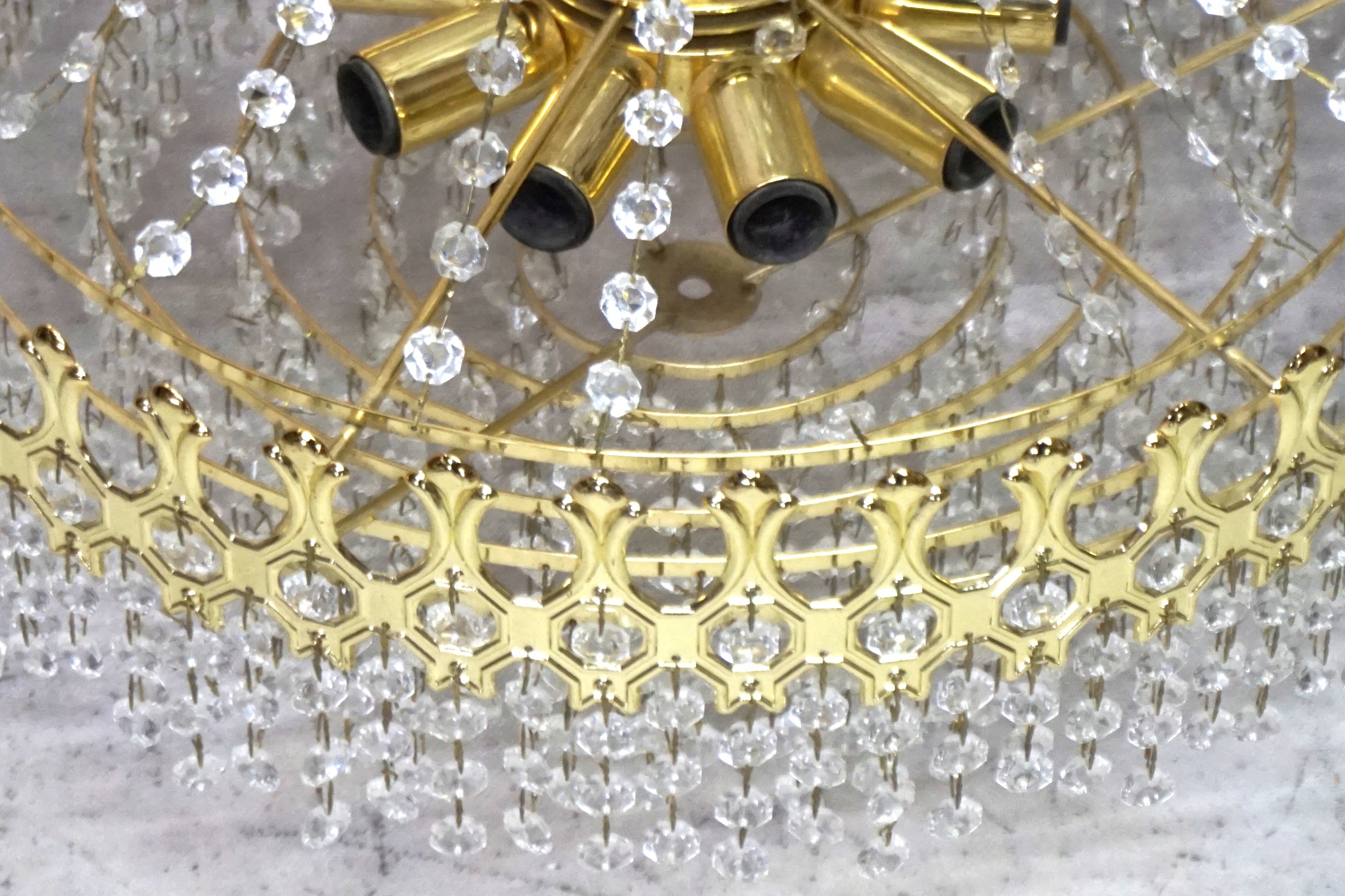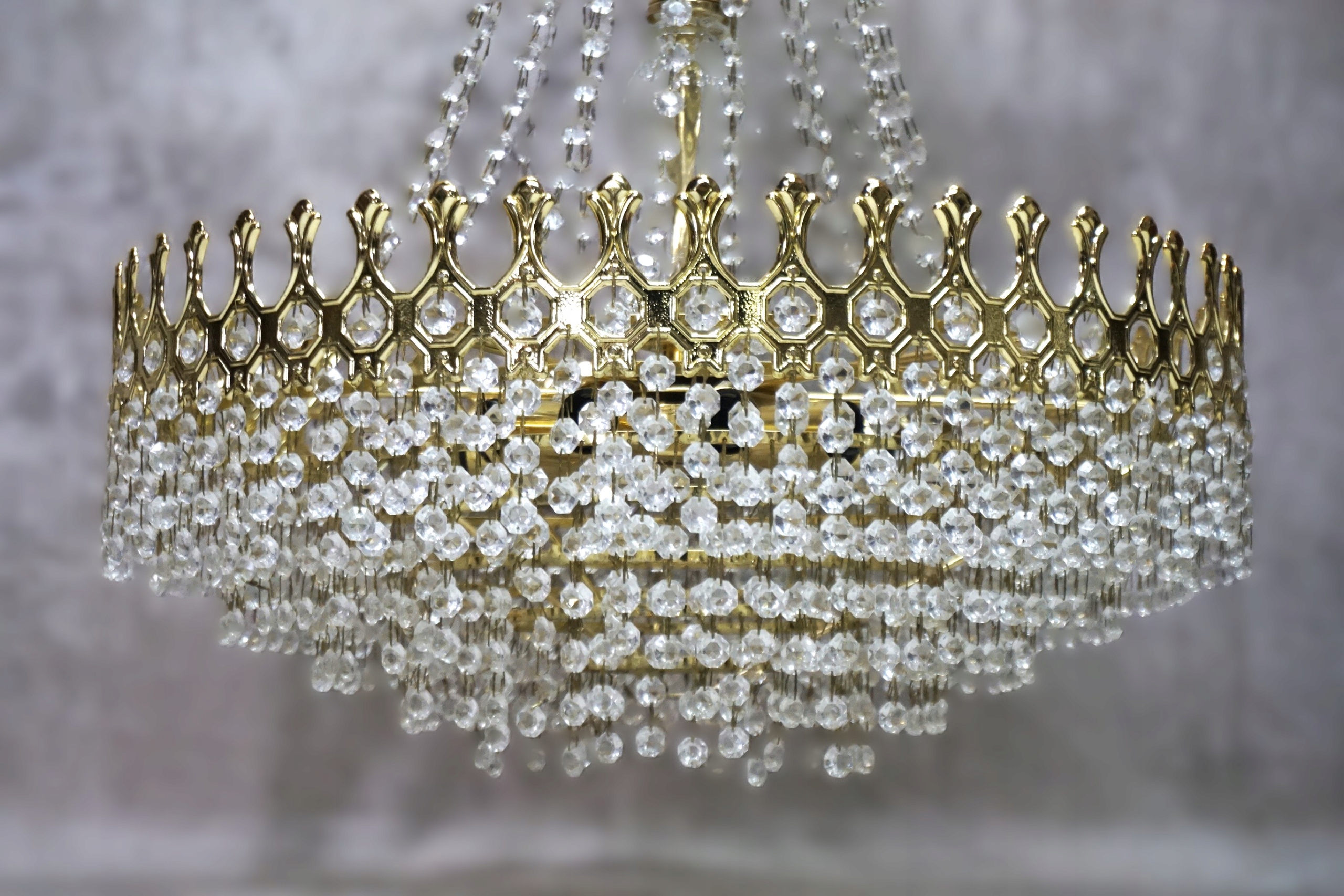 Żyrandol mosiężno- mosiądzowany z mnóstwem mieniących szklanych kryształków-