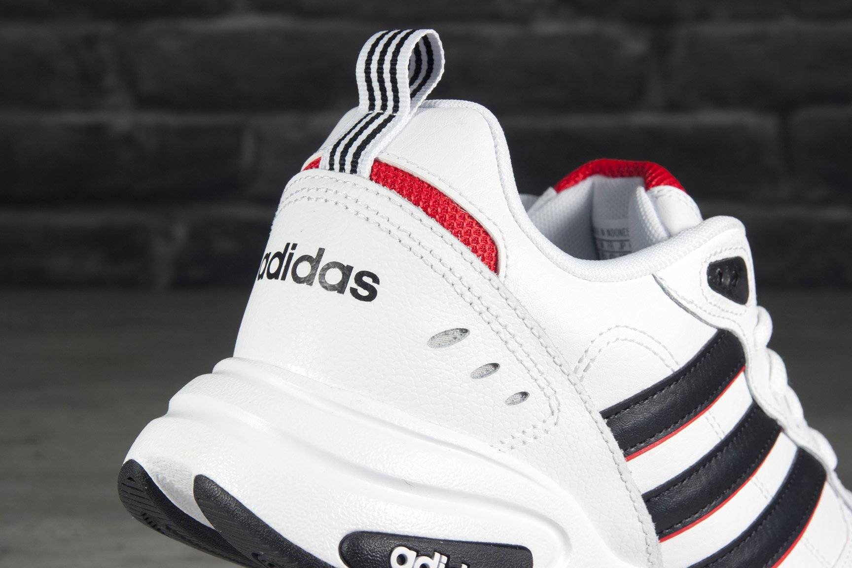 Sneakersy męskie adidas Strutter to idealne połączenie stylu i wygody. Wykonane z wytrzymałych materiałów, zapewniają trwałość i elegancki wygląd. Sznurowanie gwarantuje idealne dopasowanie. Pętelka z tyłu ułatwia wsuwanie buta na stopę, a piankowa podeszwa środkowa zapewnia doskonałą amortyzację. Gumowa podeszwa zewnętrzna oferuje przyczepność, a usztywniony nosek dodatkowo chroni palce. Produkt zawiera materiały pochodzące z recyklingu, co podkreśla nowoczesne podejście marki.