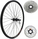 Wzmacniane tylne koło 28 calowe wraz z kasetą nakładaną oraz. Stożkowa obręcz wykonana z aluminium, posiada 36 szprych w kolorze czarnym.