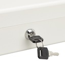 Chcesz bezpiecznie przechowywać gotówkę? Ta kasetka na pieniądze jest właściwym wyborem. Skrzynka na gotówkę nadaje się do użytku w domu, a także na pchlich targach, festynach i innych imprezach. Monety można posortować według wartości w 5 przegródkach, a banknoty można przechowywać w oddzielnych 4 przegródkach dzięki czemu zawsze masz przegląd pieniędzy. Kasetkę można bezpiecznie zamknąć i łatwo transportować dzięki uchwytowi do przenoszenia.Parametry kasetki na pieniądze- wymiary: ok. 8,5 x 30,5 x 24,5 cm- waga: ok. 1,8 kg- materiał: żelazo, tworzywo sztuczne, stal- kolor: do wyboruKasetka na monety i banknoty- skrzynka do przechowywania gotówki, monet i paragonów- pudełko na gotówkę zamykane na klucz- 5 przegródek na monety- 4 przegrody na banknoty - łatwy transport dzięki praktycznemu uchwytowi do przenoszenia- do użytku prywatnego i służbowego w marketach, na targach lub imprezach szkolnych itp.- wytrzymała - wykonana z solidnego żelaza z powłoką proszkowąW zestawie- 1x kasetka na pieniądze- 2x kluczyk- elementy dekoracyjne nie są zawarte w zestawie